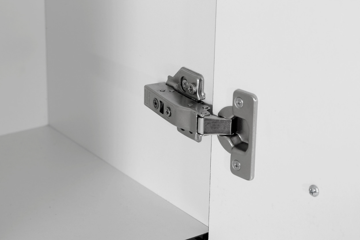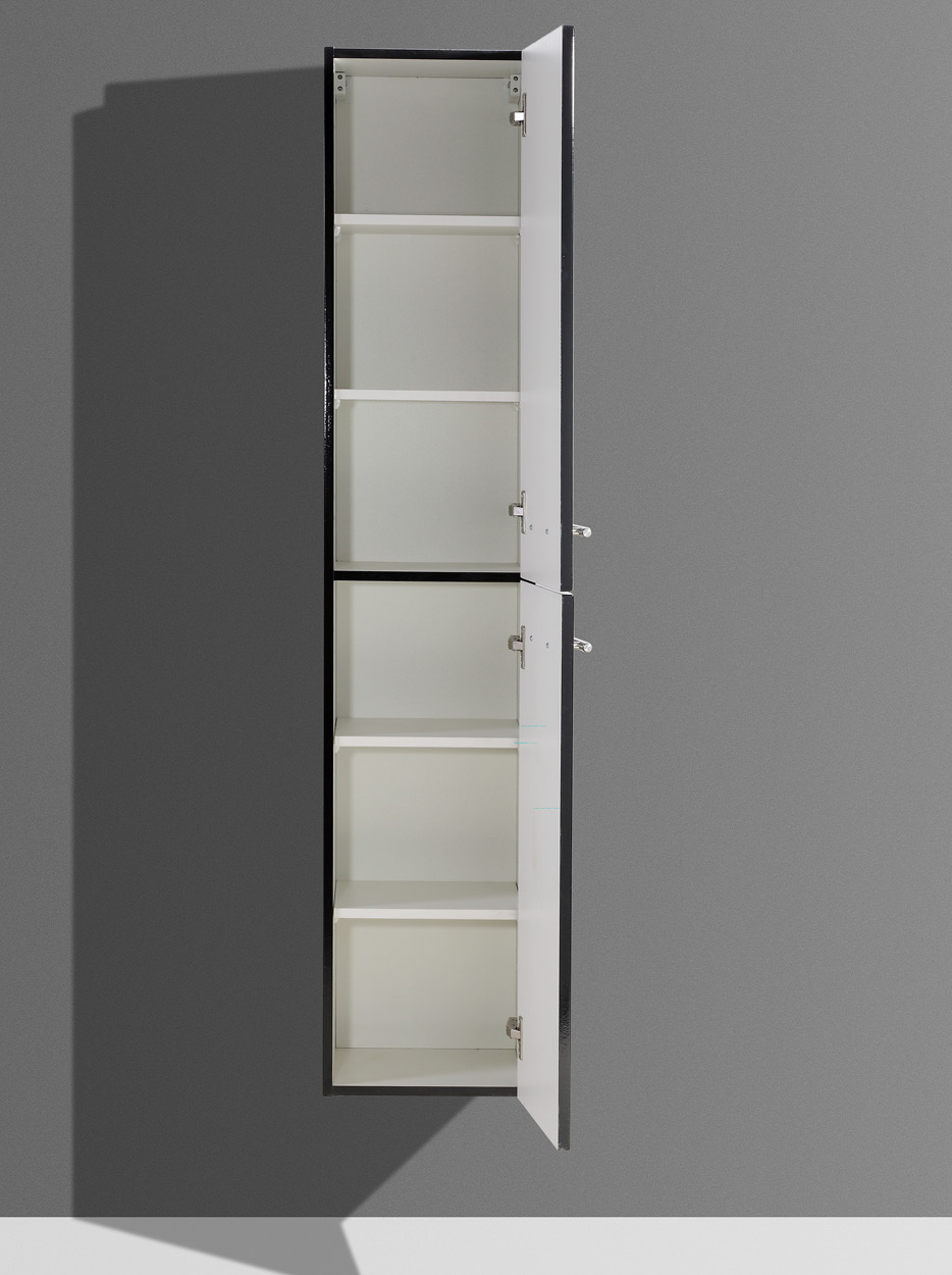 Dørene har en soft close-funksjon som sørger for myk lukking og forlenget levetid. Høyskapet kommer ferdig montert, og har to dører og fem hyller. Du kan selv velge hvilken side du ønsker at dørene skal slå. Det finnes også baderomsmøbel i samme serie.
