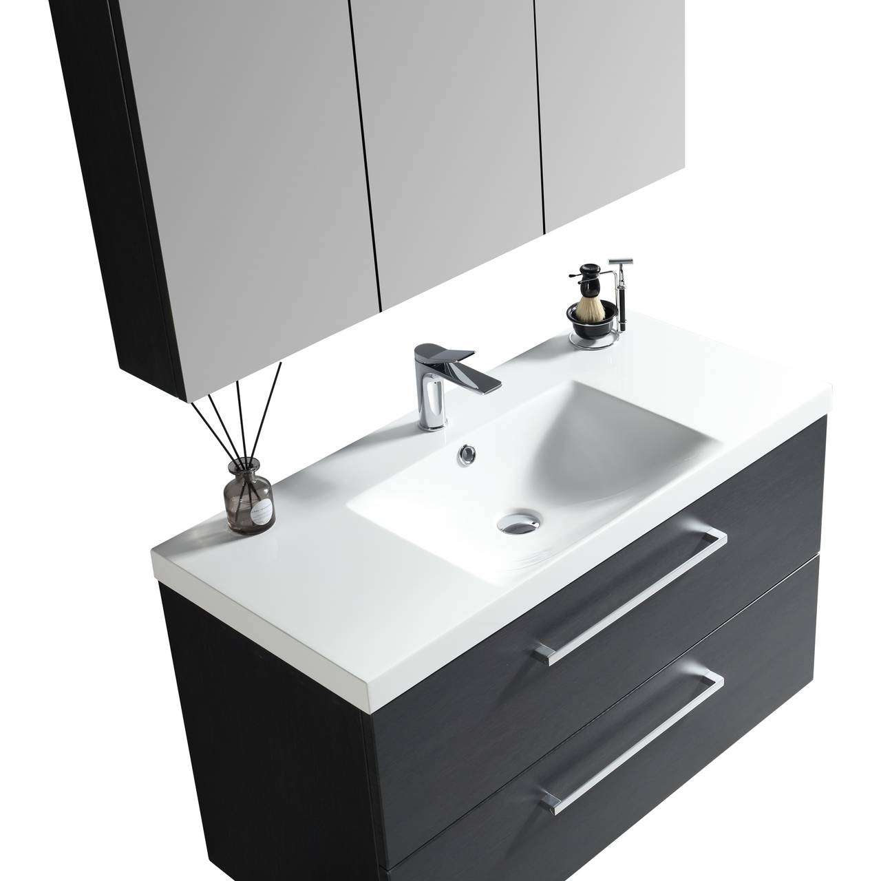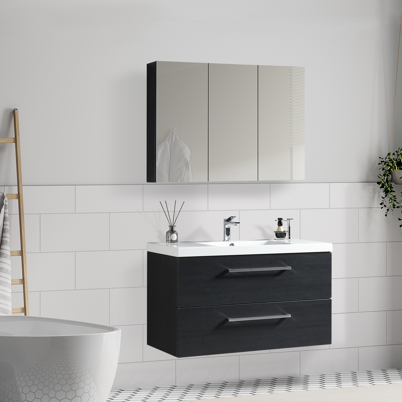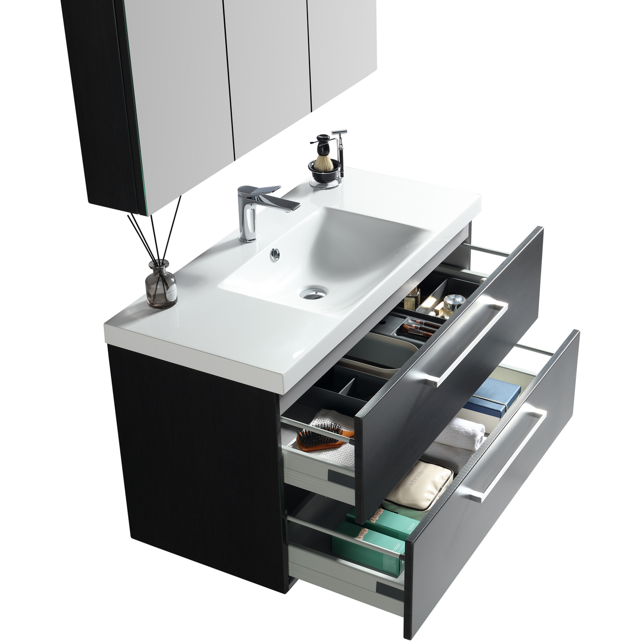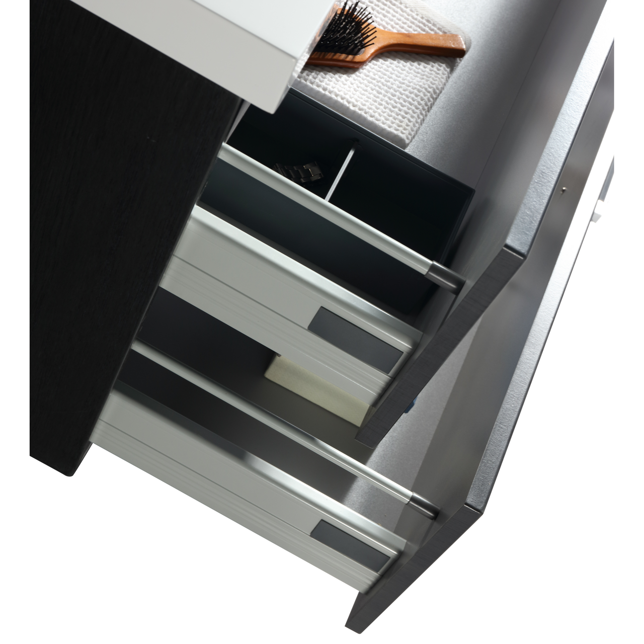 Skuffene på møbelet har håndtak i krom, og en soft close-funksjon som sørger for myk lukking og forlenget levetid. Baderomsmøbelet finnes i flere størrelser, og det finnes også høyskap i samme serie.