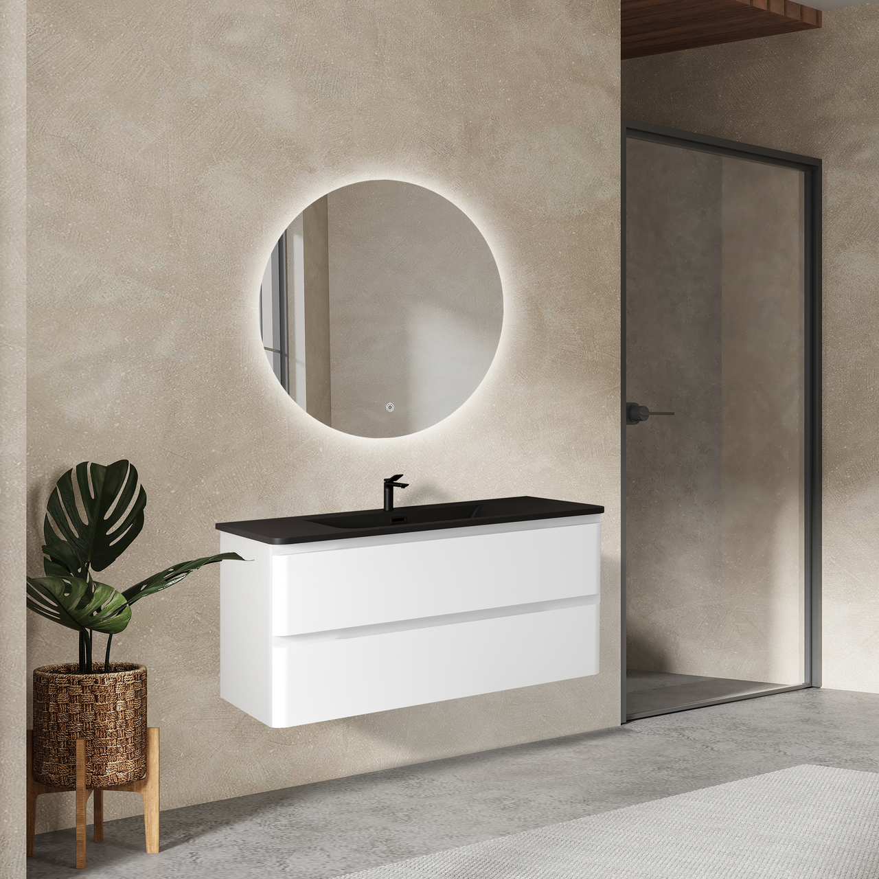 Lind Magical er en moderne og minimalistisk møbelserie, som passer godt inn i moderne baderom. Dette baderomsmøbelet har avrundede hjørner, og en foliert, matt hvit overflate. Den folierte overflaten gjør rengjøringen enklere, og bevarer møbelets slitestyrke.