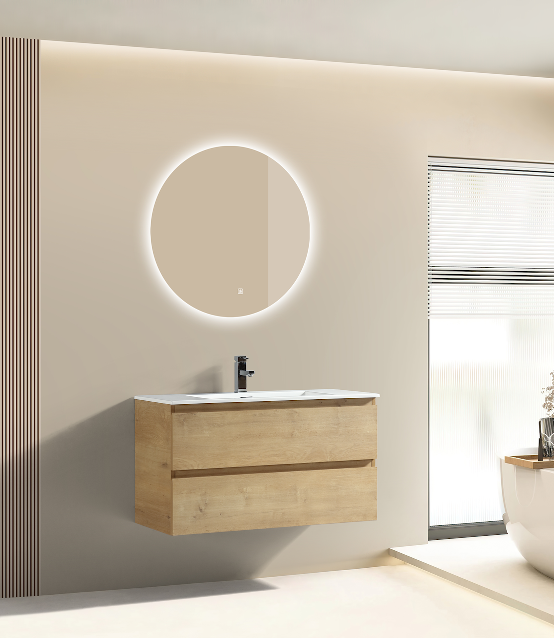 Lind Natural er en moderne møbelserie i en eikefarge som passer perfekt inn i den skandinaviske stilen. Dette baderomsmøbelet har rette linjer og en foliert overflate. Den folierte overflaten gjør rengjøringen enklere, og bevarer møbelets slitestyrke.