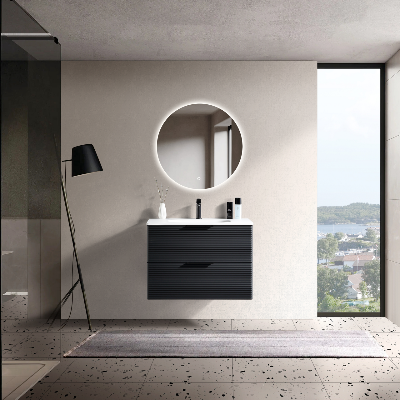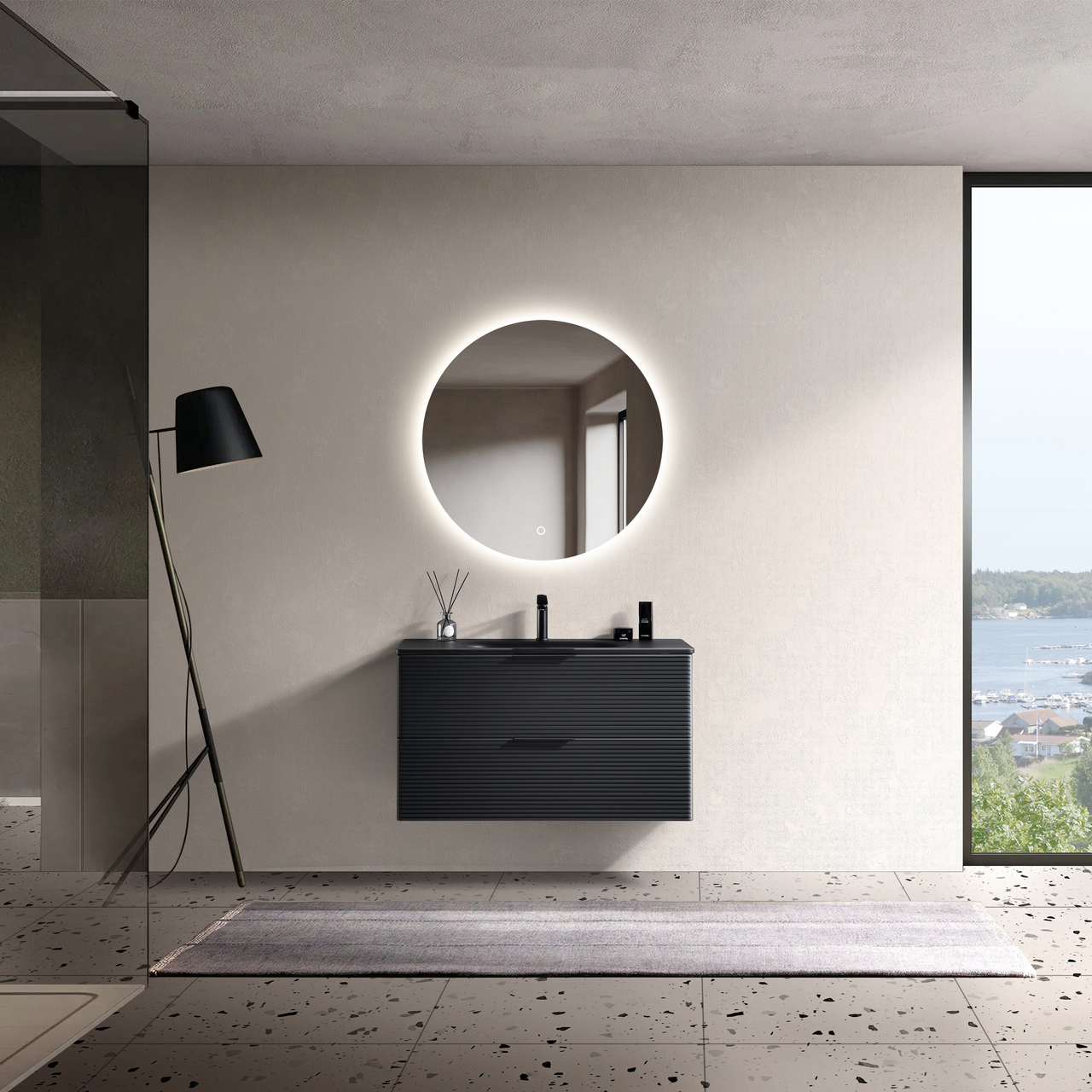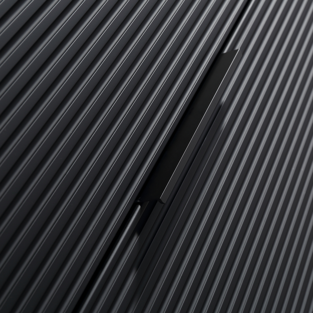 Lind Timber er en moderne møbelserie med en matt sort overflate. Dette baderomsmøbelet har riller i front, og en foliert overflate. Den folierte overflaten gjør rengjøringen enklere, og bevarer møbelets slitestyrke.