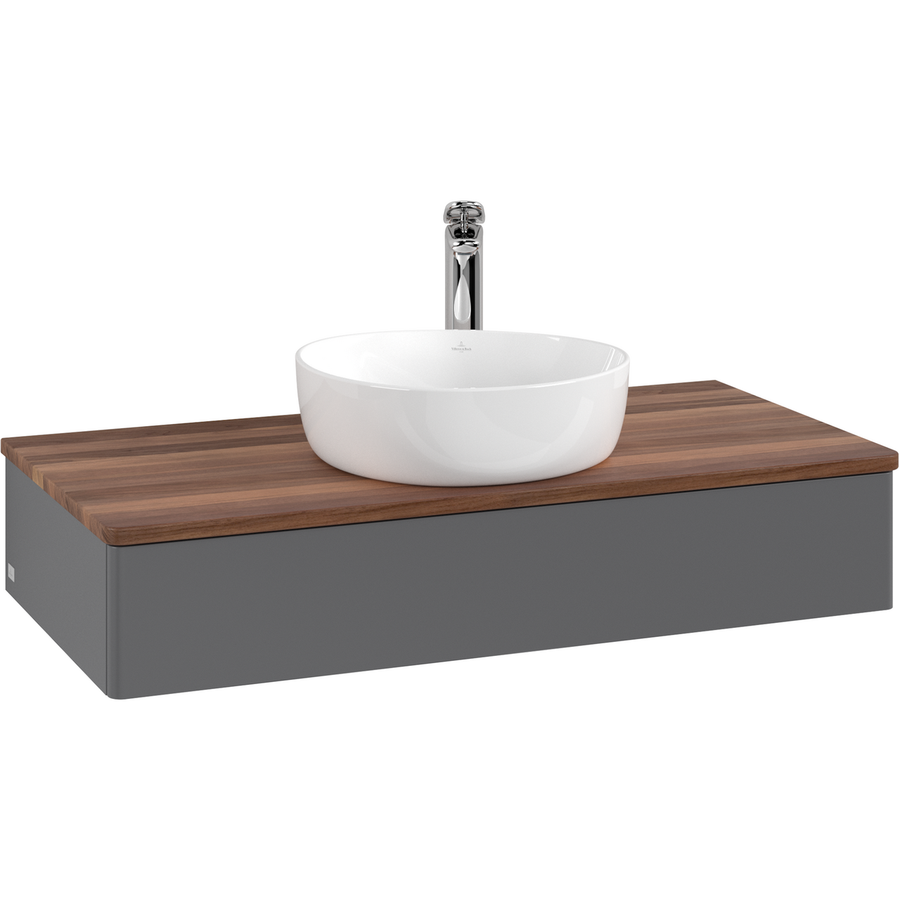 V&b antao servantskap 1 skuff glatt 1000x190x500 m/kranhull m/lys antrasitt/valnøtt