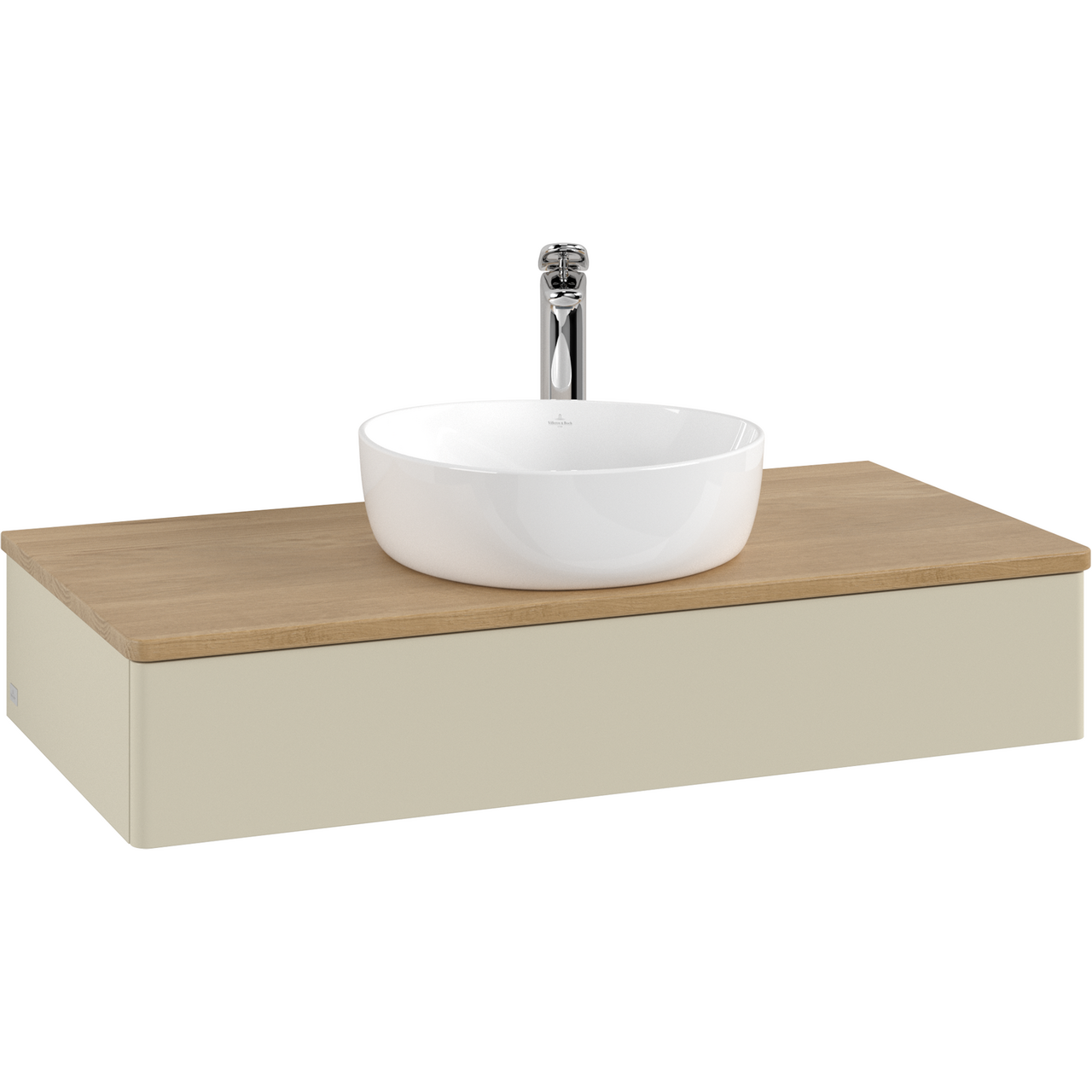 V&b antao servantskap 1 skuff glatt 1000x190x500 m/kranhull m/lys silkegrå/eik