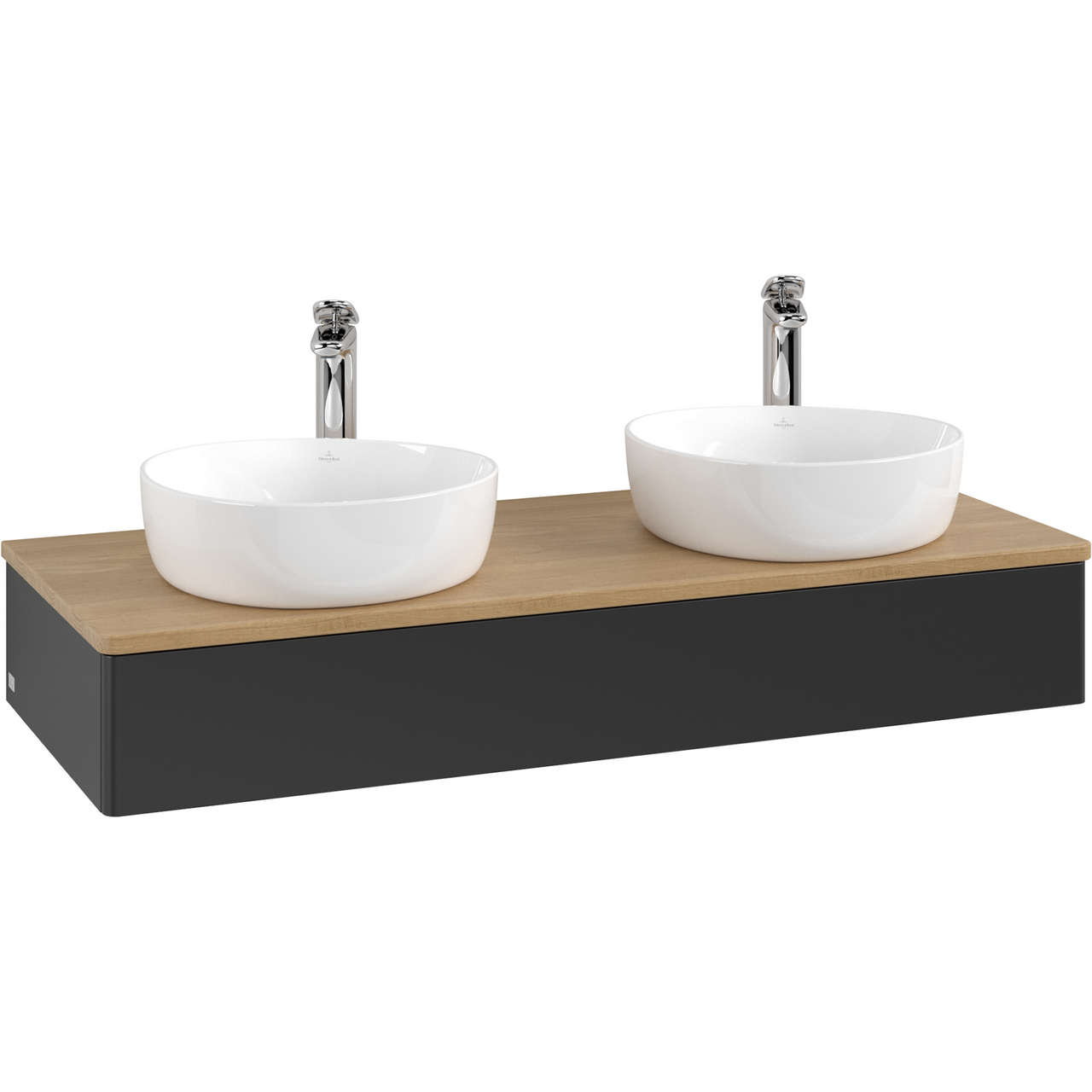 V&b antao servantskap 1 skuff glatt 1200x190x500 for 2 serv. m/kranhull m/lys matt sort/eik