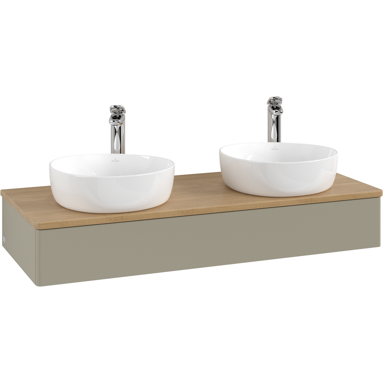 V&b antao servantskap 1 skuff glatt 1200x190x500 for 2 serv. m/kranhull m/lys stengrå/eik