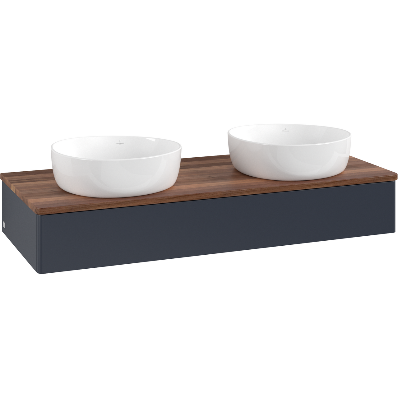 V&b antao servantskap 1 skuff glatt 1200x190x500 for 2 serv. u/kranhull m/lys blå/valnøtt