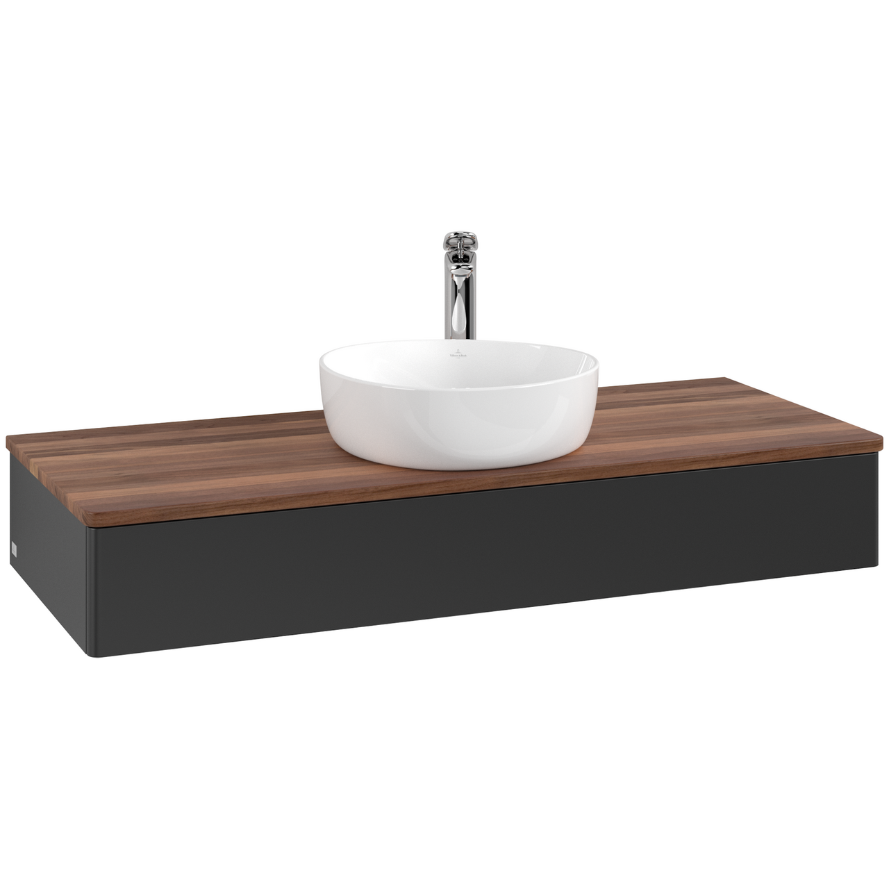 V&b antao servantskap 1 skuff glatt 1200x190x500 m/kranhull matt sort/valnøtt