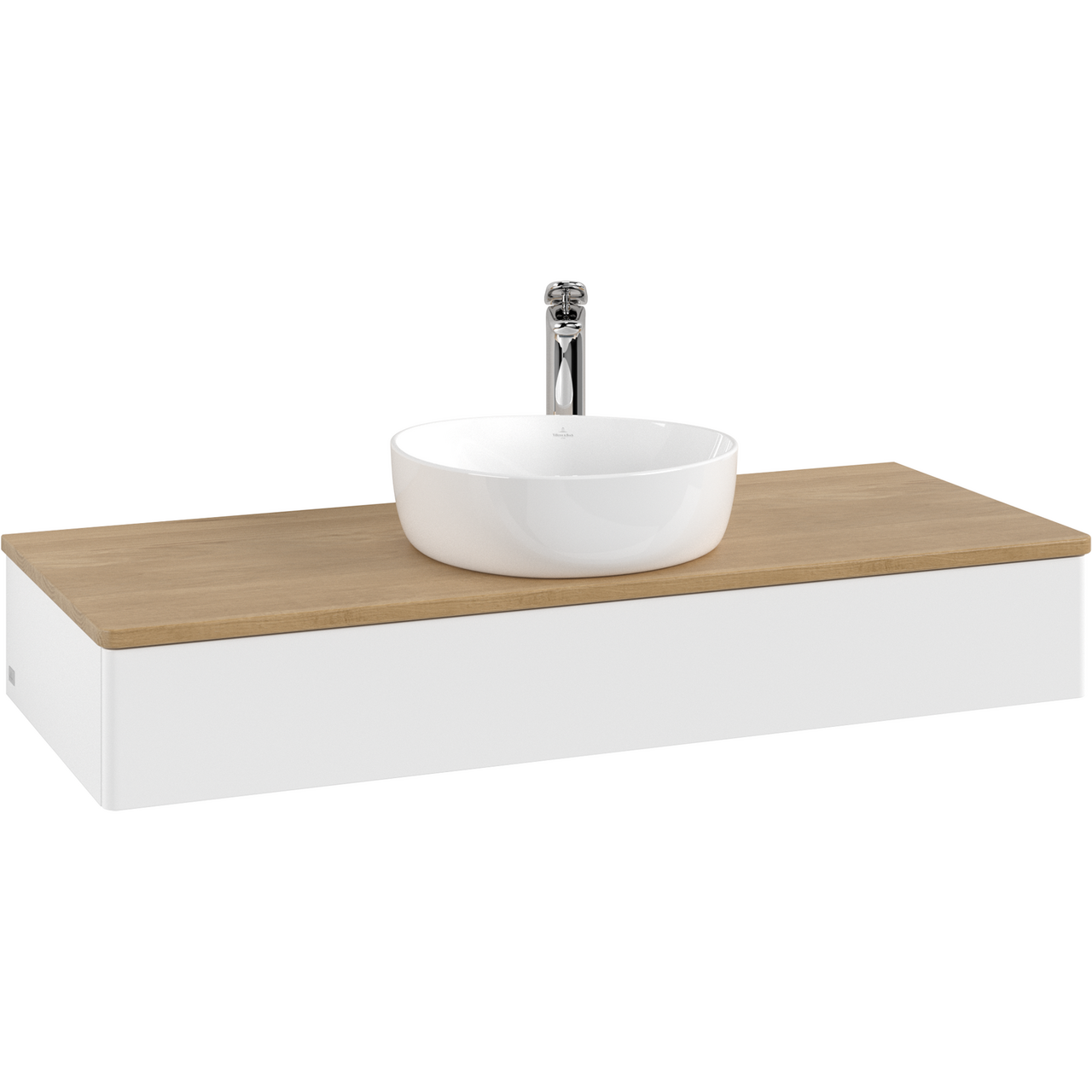 V&b antao servantskap 1 skuff glatt 1200x190x500 m/kranhull m/lys matt hvit/eik