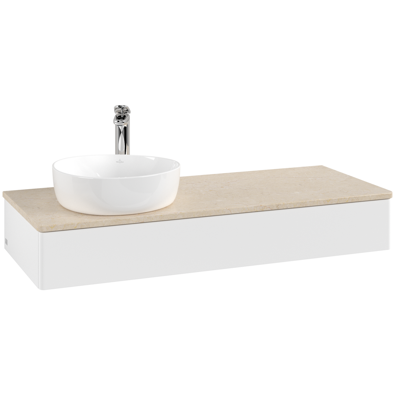 V&b antao servantskap 1 skuff glatt 1200x190x500 venstre m/kranhull matt hvit/créme