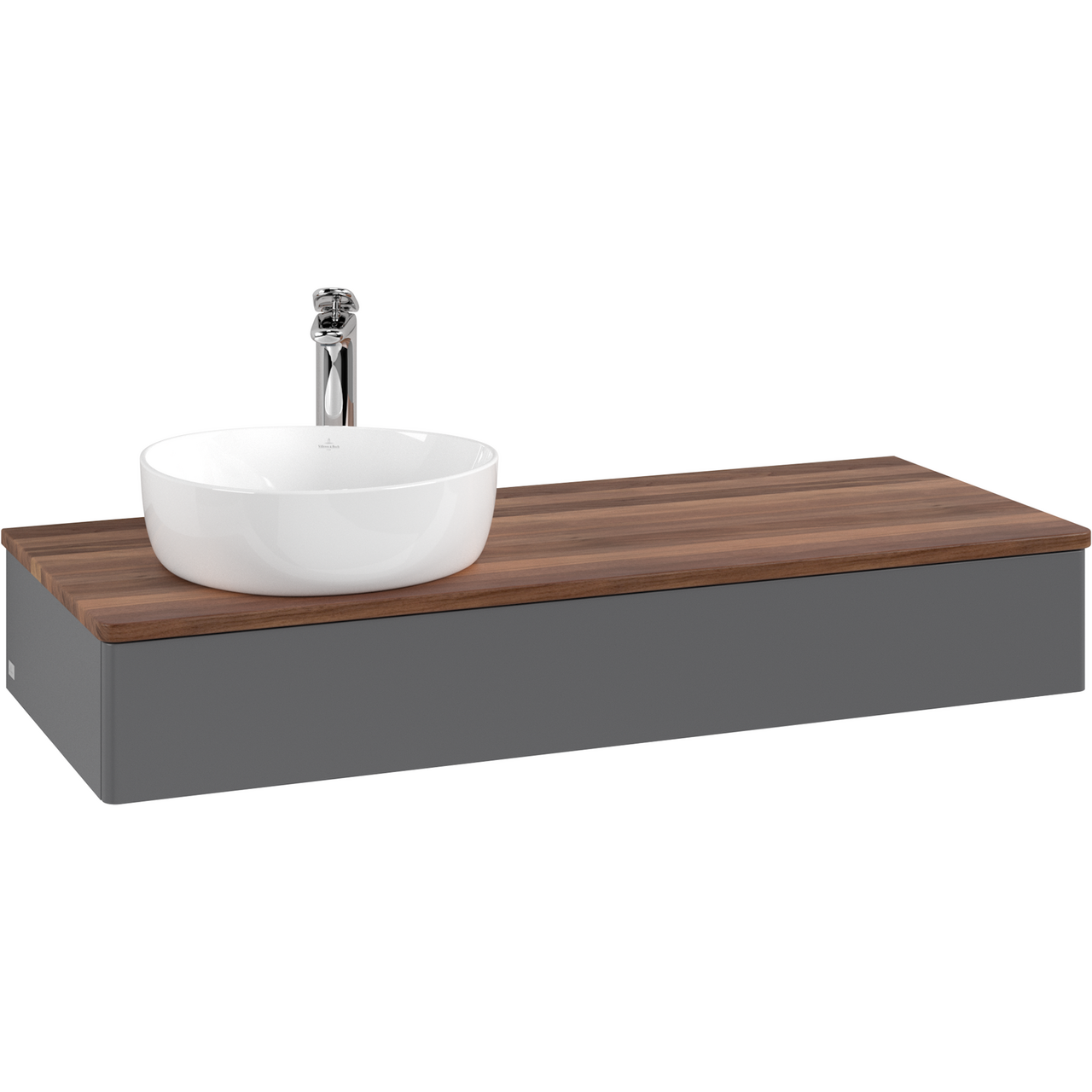 V&b antao servantskap 1 skuff glatt 1200x190x500 venstre m/kranhull m/lys antrasitt/valnøtt