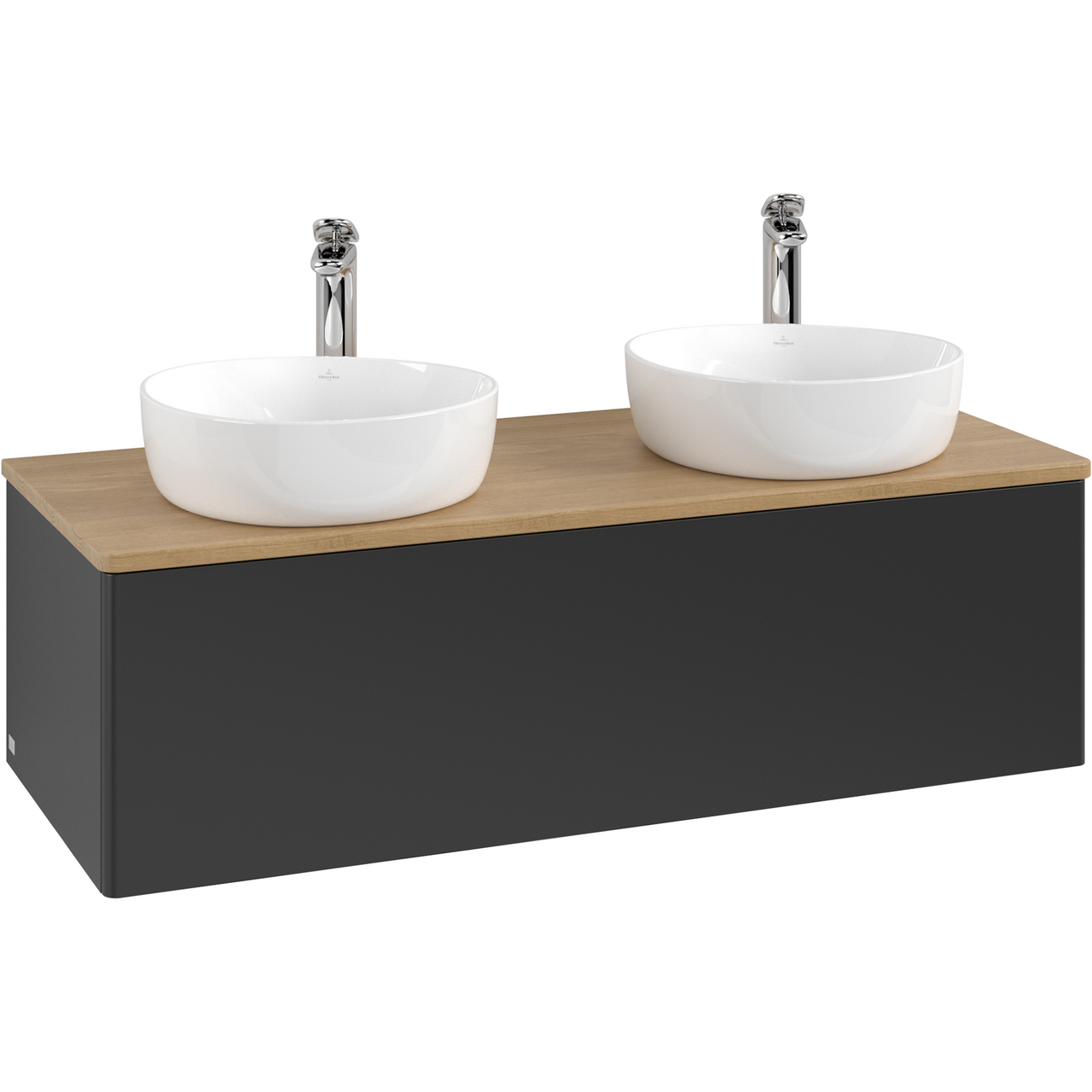 V&b antao servantskap 1 skuff glatt 1200x360x500 for 2 serv. m/kranhull m/lys matt sort/eik