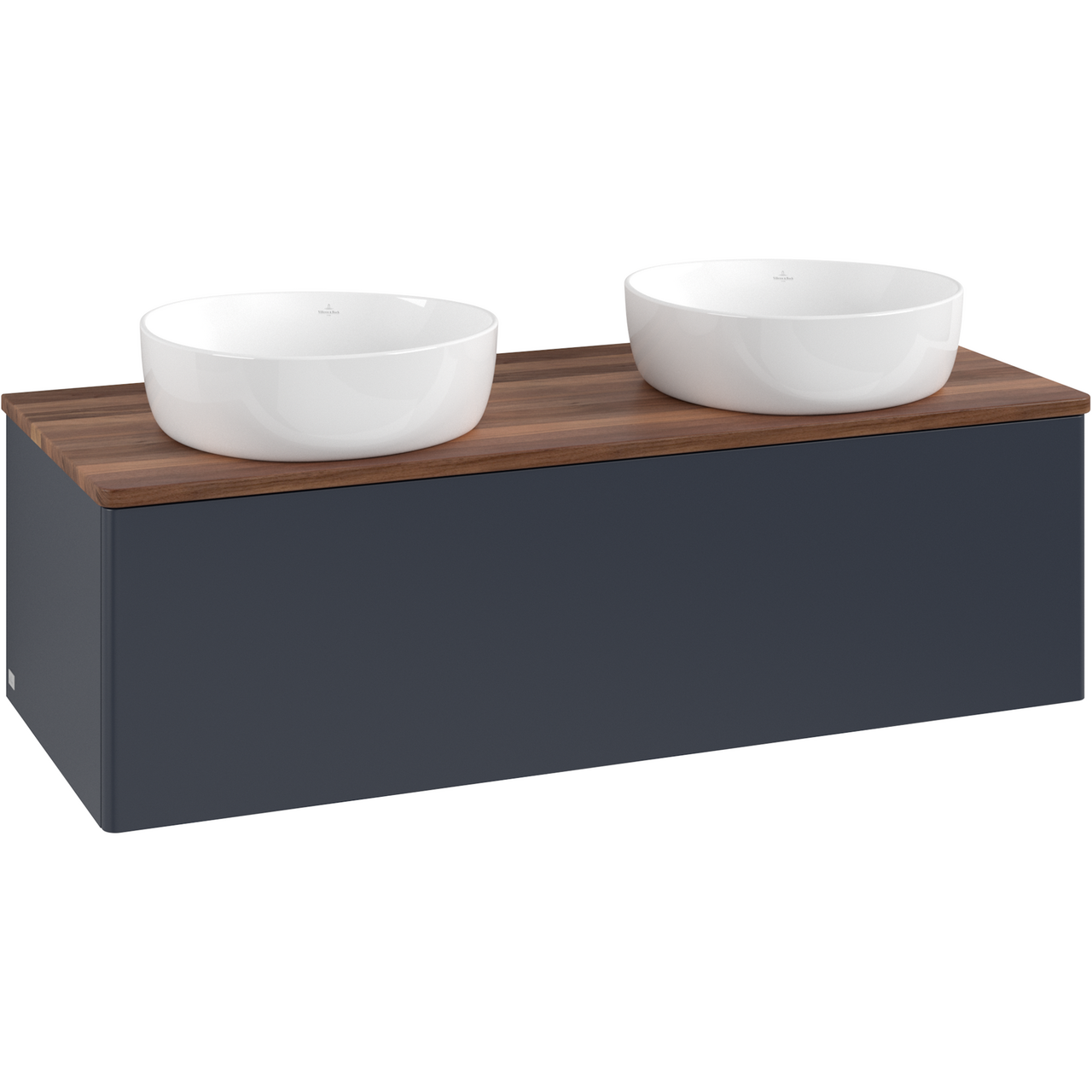 V&b antao servantskap 1 skuff glatt 1200x360x500 for 2 serv. u/kranhull m/lys blå/valnøtt