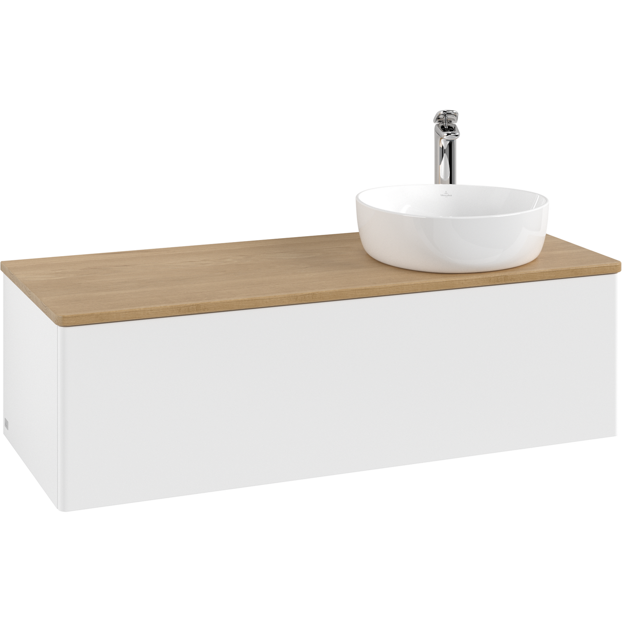 V&b antao servantskap 1 skuff glatt 1200x360x500 høyre m/kranhull m/lys matt hvit/eik