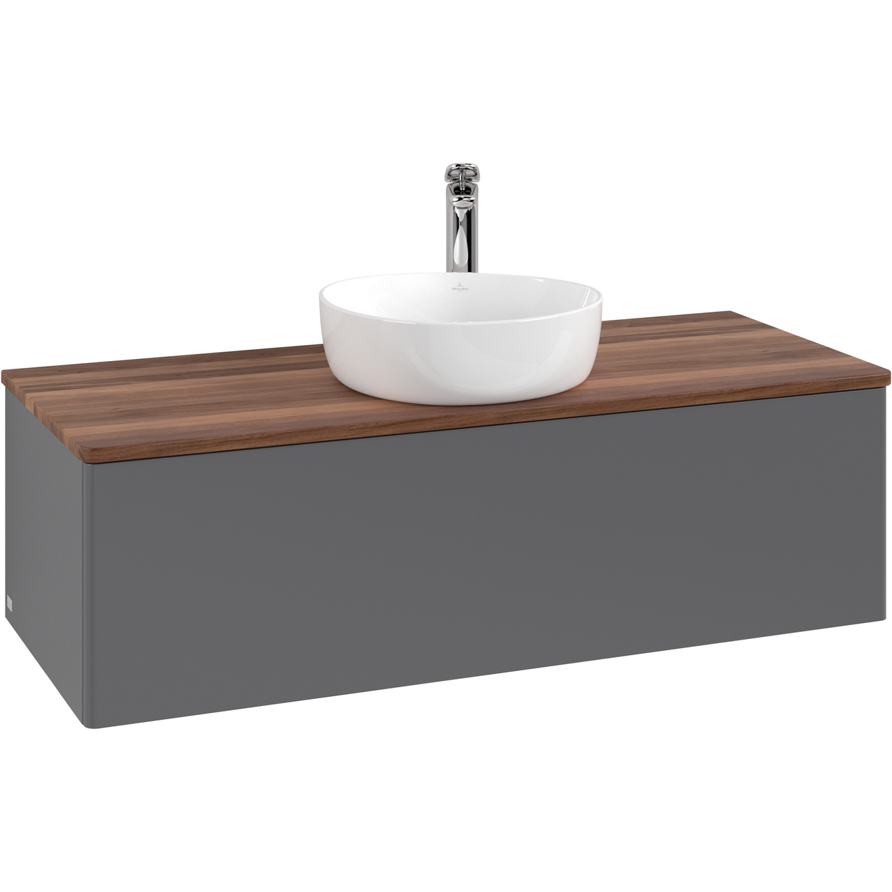 V&b antao servantskap 1 skuff glatt 1200x360x500 m/kranhull m/lys antrasitt/valnøtt