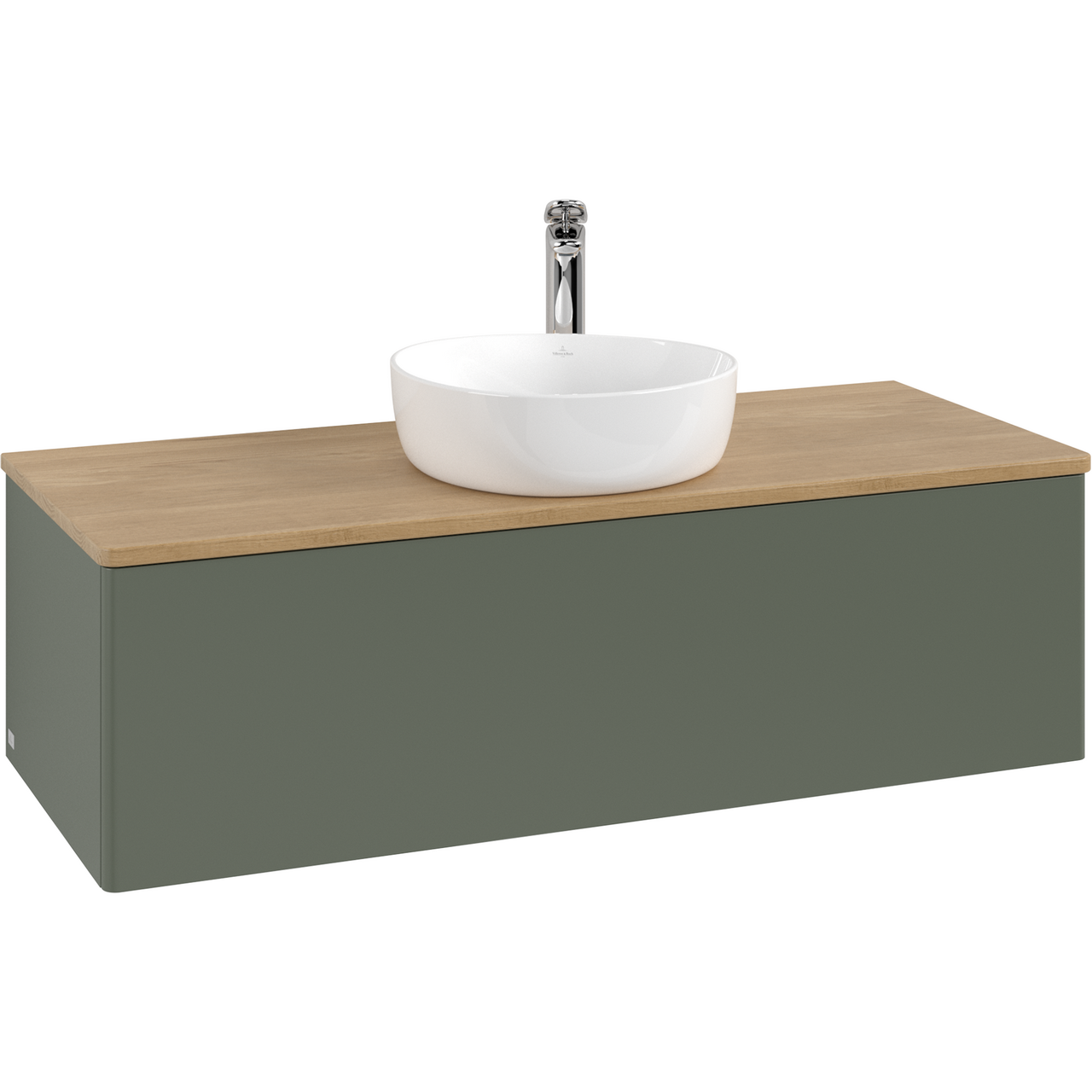 V&b antao servantskap 1 skuff glatt 1200x360x500 m/kranhull m/lys grønn/eik