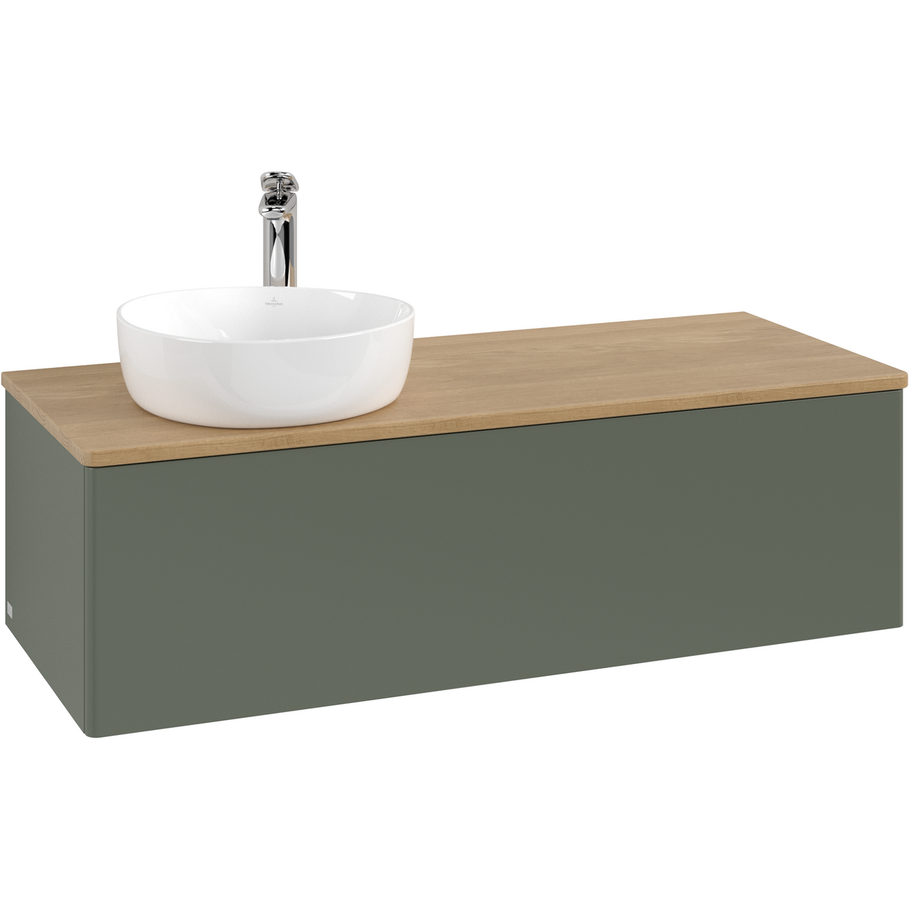 V&b antao servantskap 1 skuff glatt 1200x360x500 venstre m/kranhull m/lys grønn/eik