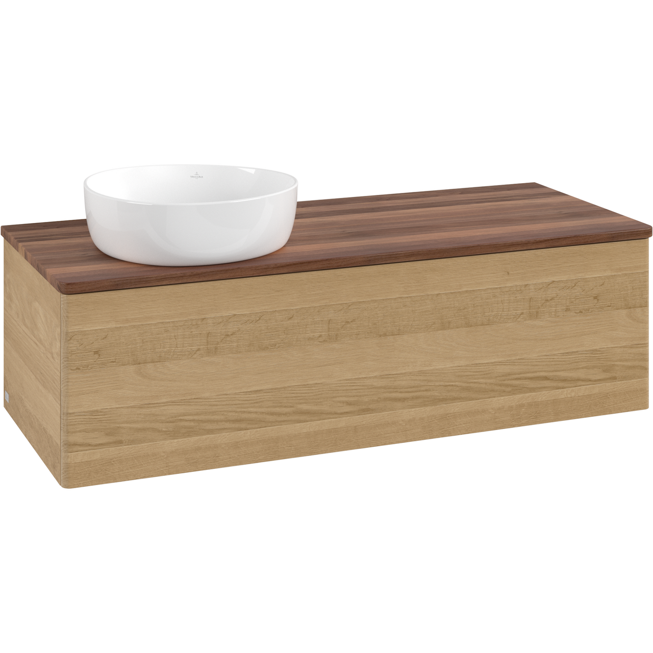 V&b antao servantskap 1 skuff glatt 1200x360x500 venstre u/kranhull m/lys eik/valnøtt