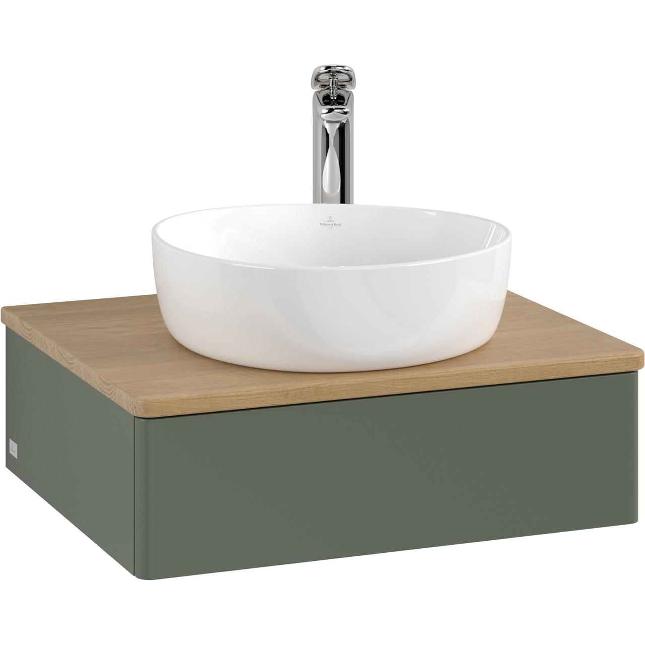 V&b antao servantskap 1 skuff glatt 600x190x500 m/kranhull m/lys grønn/eik
