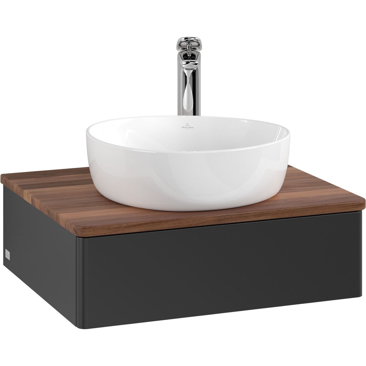 V&b antao servantskap 1 skuff glatt 600x190x500 m/kranhull m/lys matt sort/valnøtt