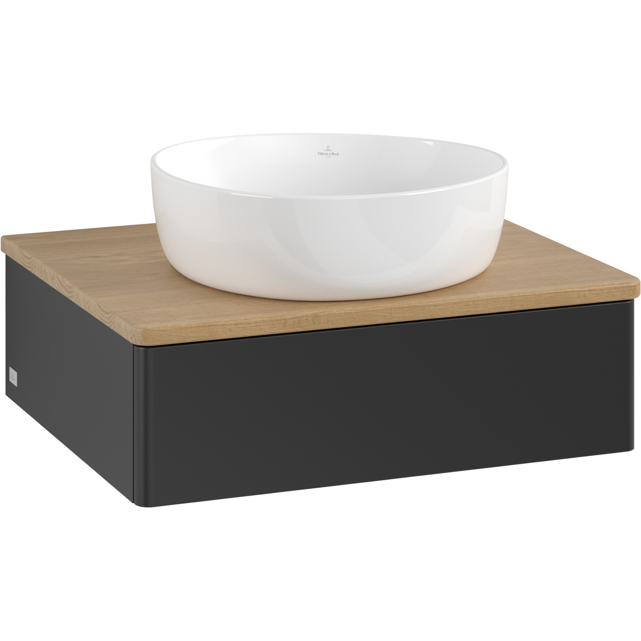 V&B ANTAO SERVANTSKAP 1 SKUFF GLATT 600X190X500 U/KRANHULL M/LYS MATT SORT/EIK