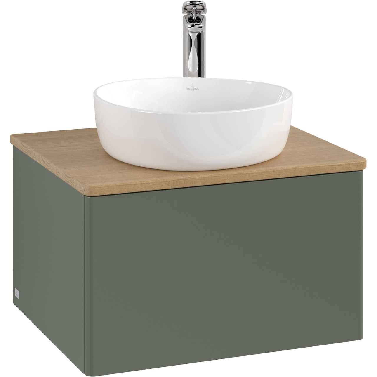 V&b antao servantskap 1 skuff glatt 600x360x500 m/kranhull m/lys grønn/eik
