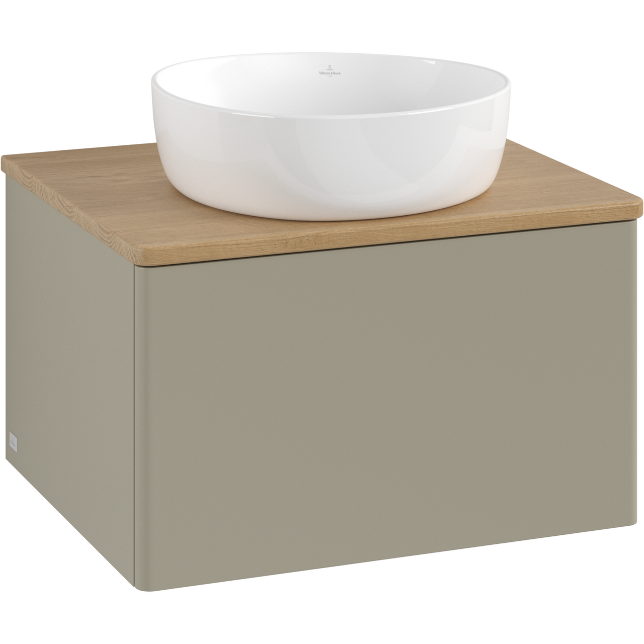 V&b antao servantskap 1 skuff glatt 600x360x500 u/kranhull m/lys stengrå/eik