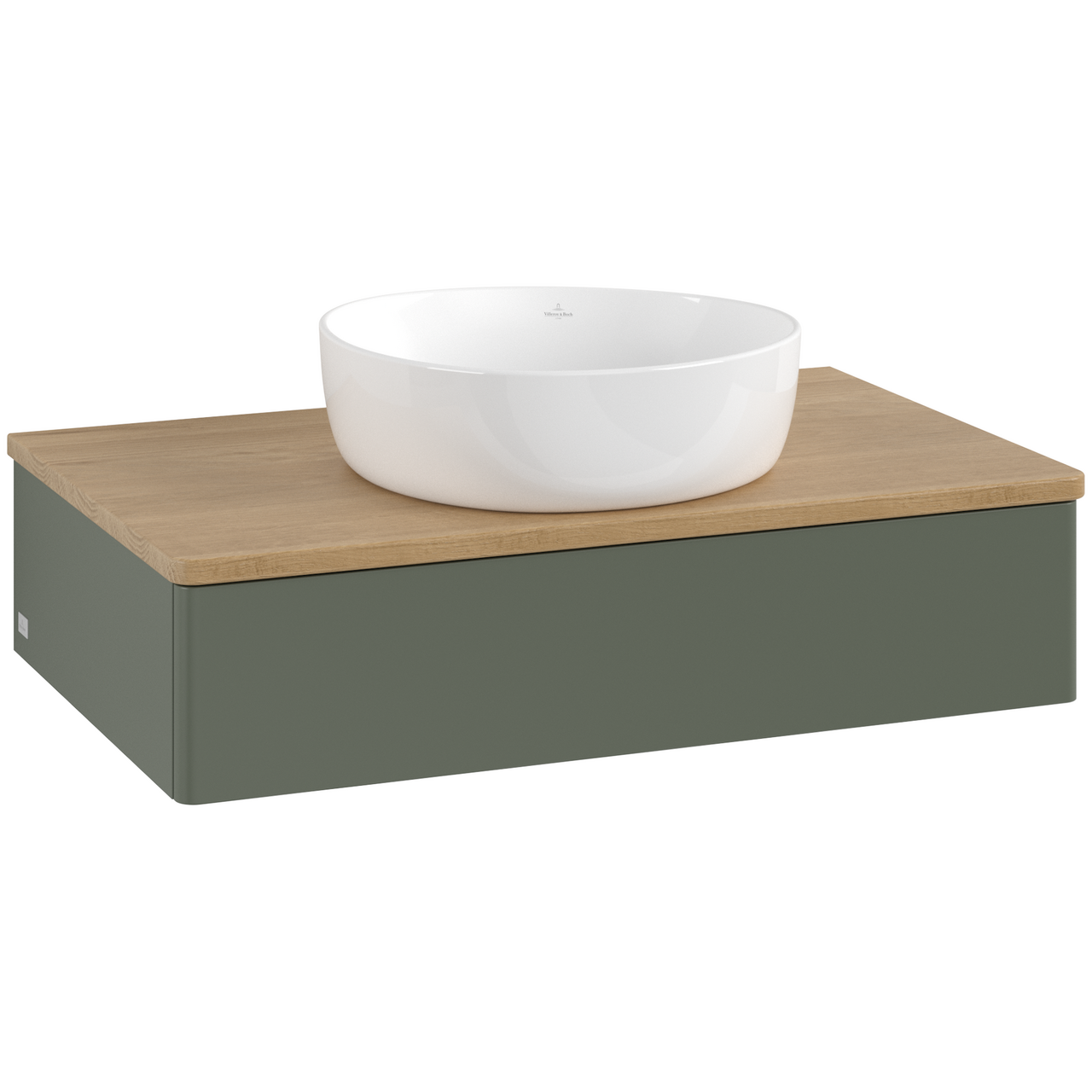 V&b antao servantskap 1 skuff glatt 800x190x500 u/kranhull grønn/eik