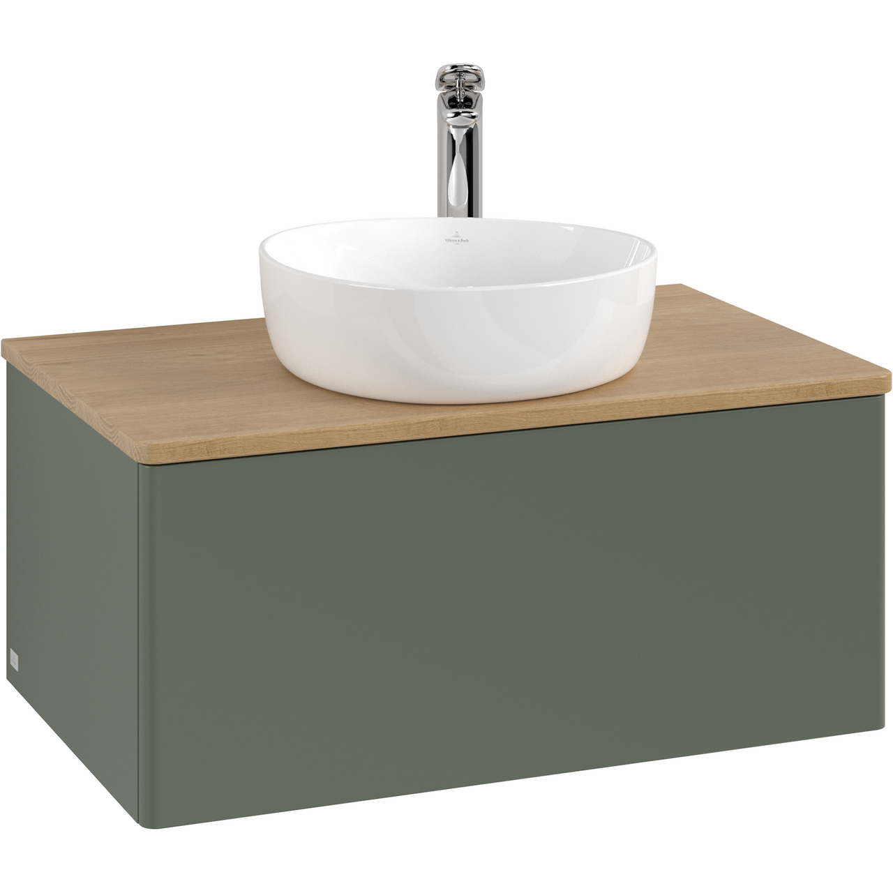 V&b antao servantskap 1 skuff glatt 800x360x500 m/kranhull m/lys grønn/eik