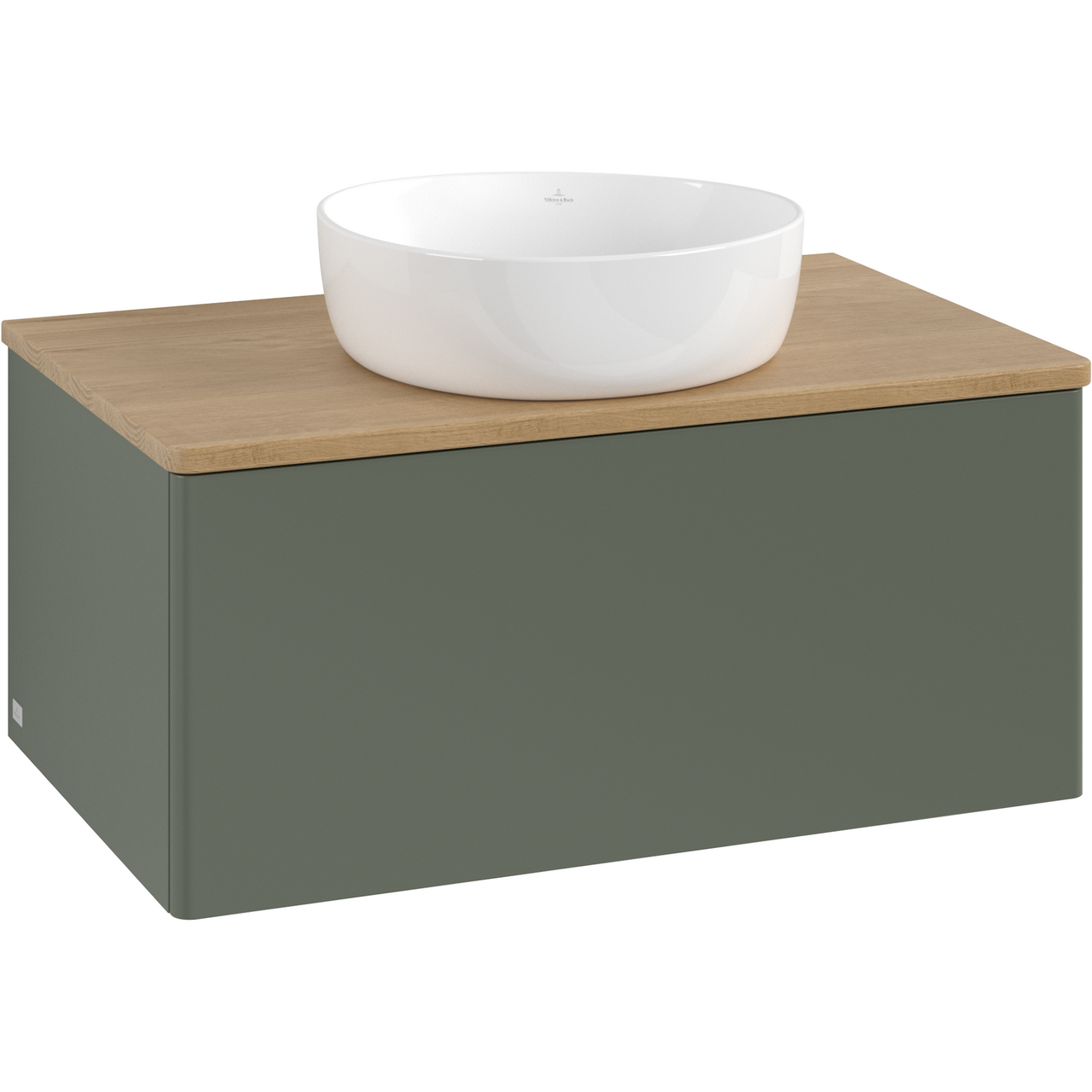 V&b antao servantskap 1 skuff glatt 800x360x500 u/kranhull m/lys grønn/eik
