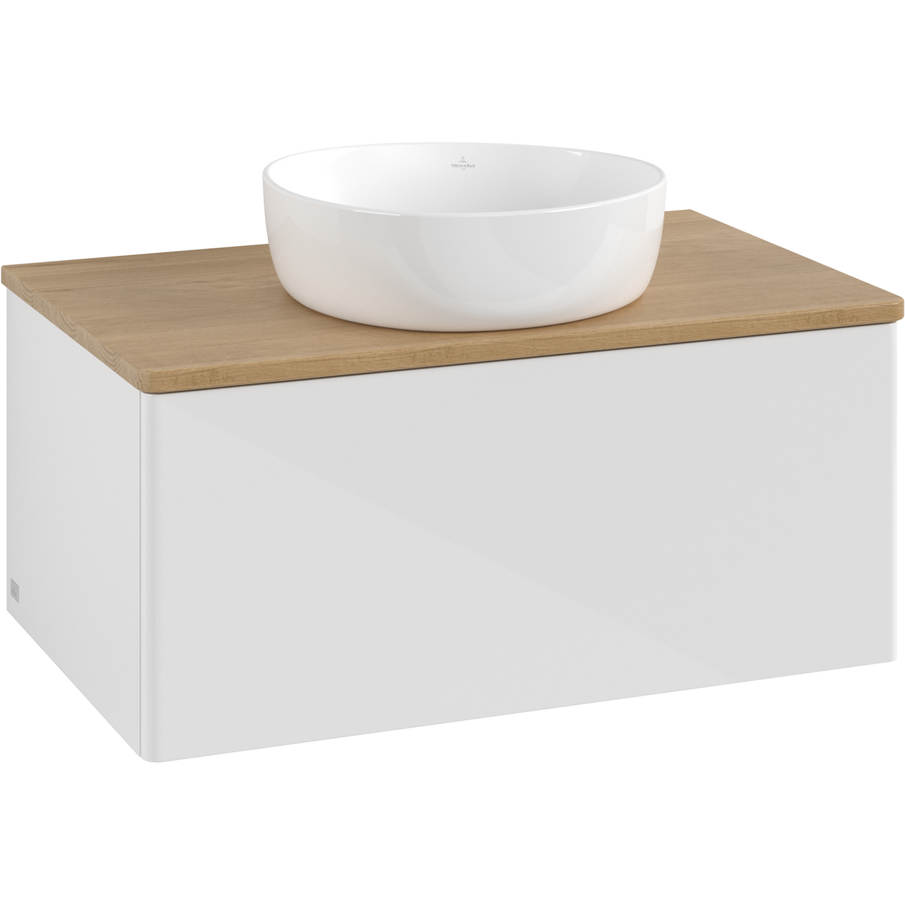 V&B ANTAO SERVANTSKAP 1 SKUFF GLATT 800X360X500 U/KRANHULL M/LYS HVIT/EIK