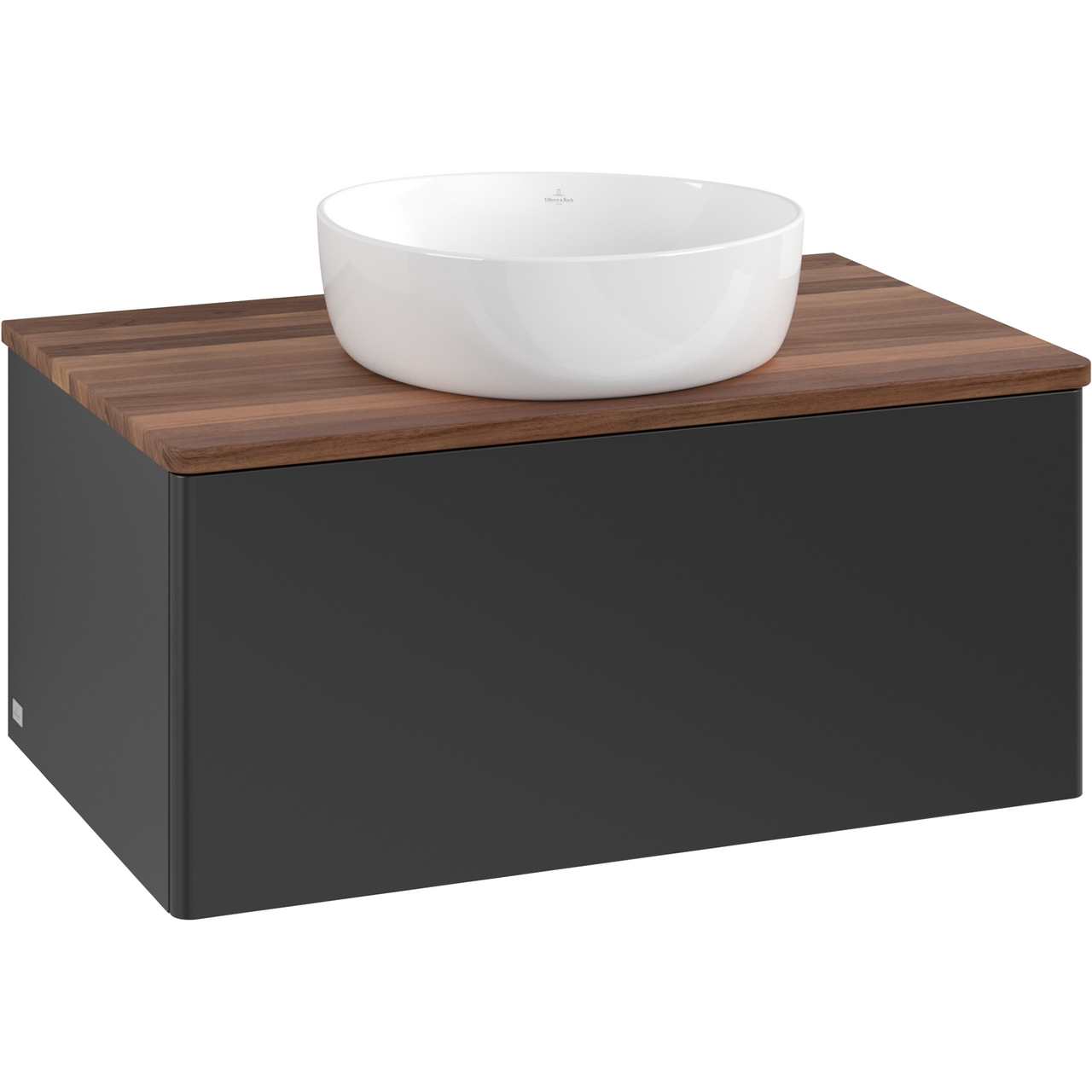 V&b antao servantskap 1 skuff glatt 800x360x500 u/kranhull m/lys matt sort/valnøtt