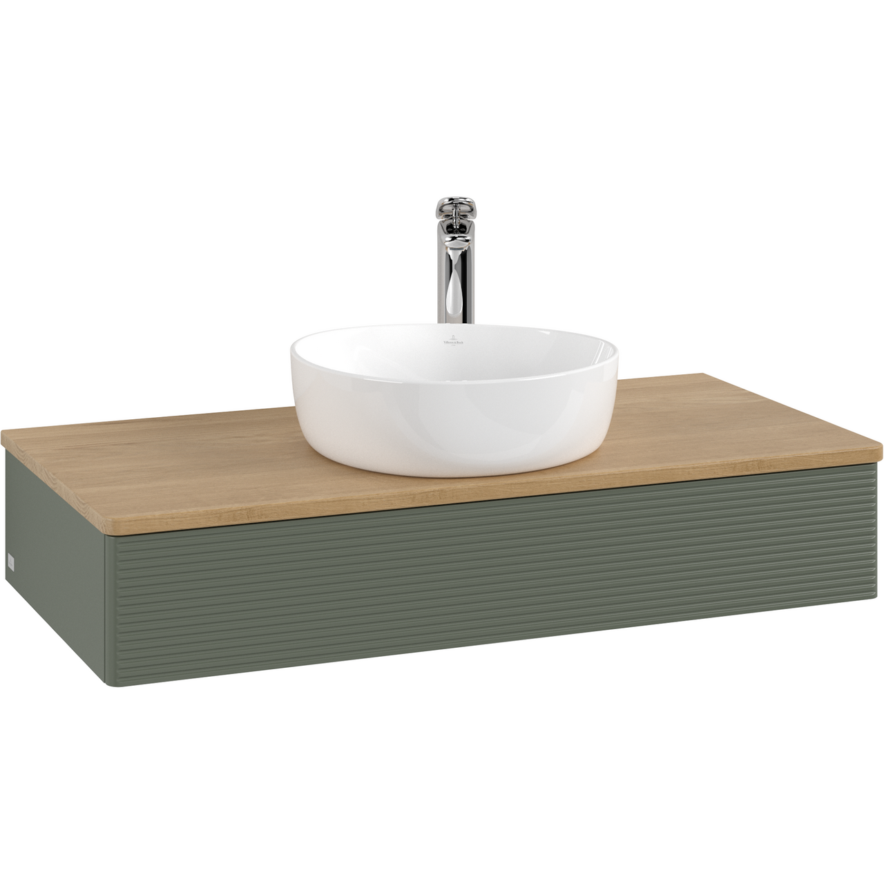 V&b antao servantskap 1 skuff rillet 1000x190x500 m/kranhull m/lys grønn/eik