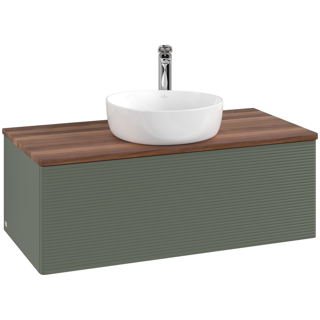 V&b antao servantskap 1 skuff rillet 1000x360x500 m/kranhull grønn/valnøtt
