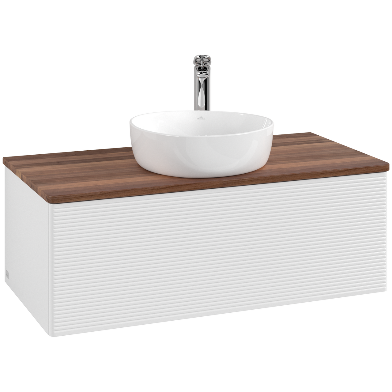 V&b antao servantskap 1 skuff rillet 1000x360x500 m/kranhull hvit/valnøtt
