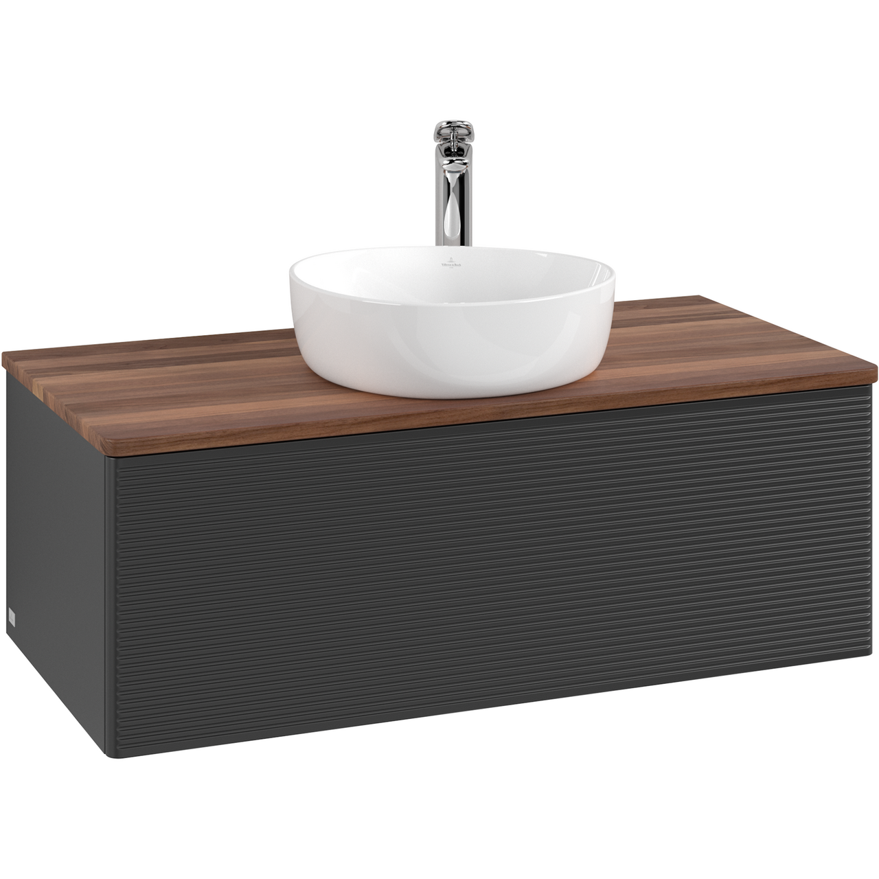 V&b antao servantskap 1 skuff rillet 1000x360x500 m/kranhull m/lys matt sort/valnøtt