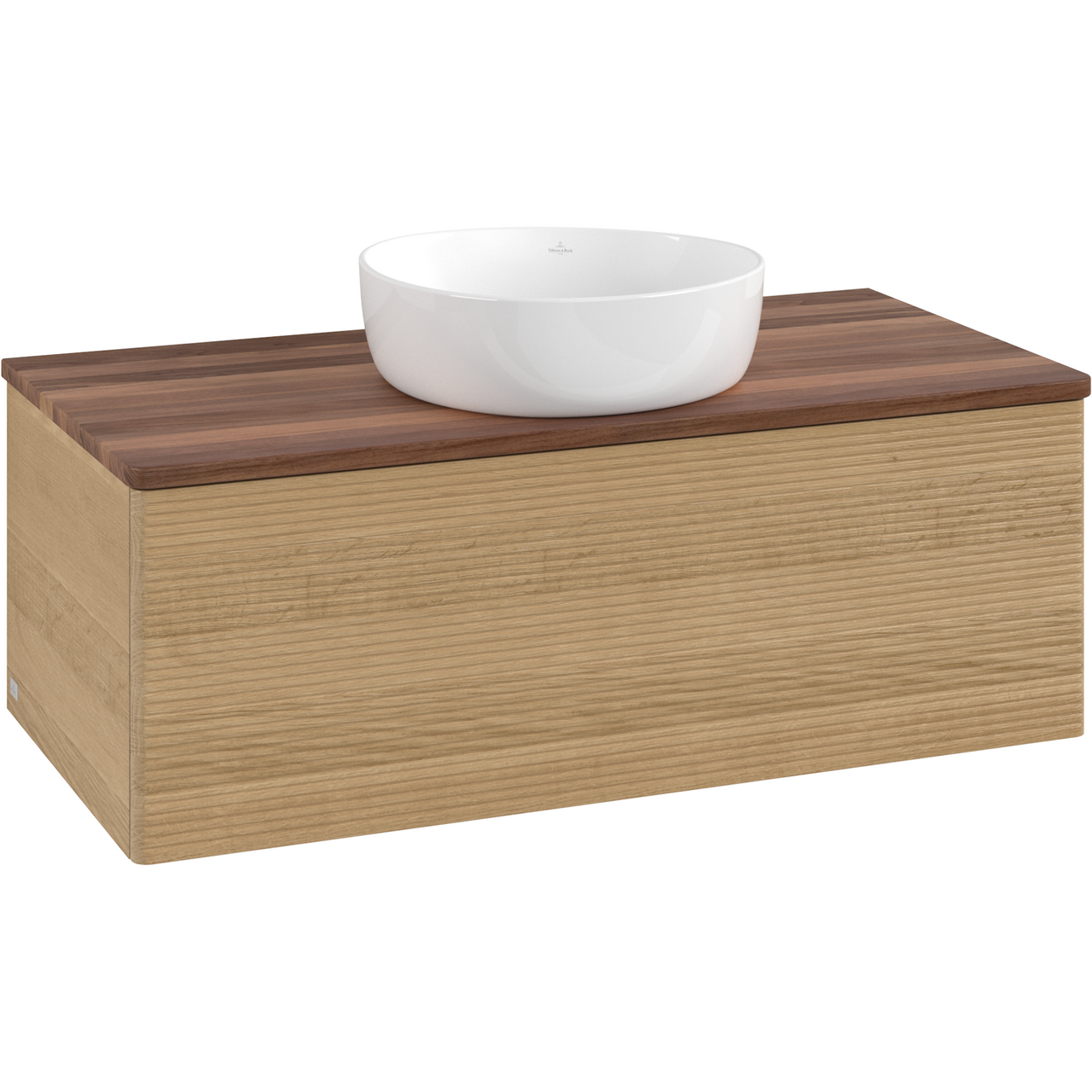 V&b antao servantskap 1 skuff rillet 1000x360x500 u/kranhull m/lys eik/valnøtt