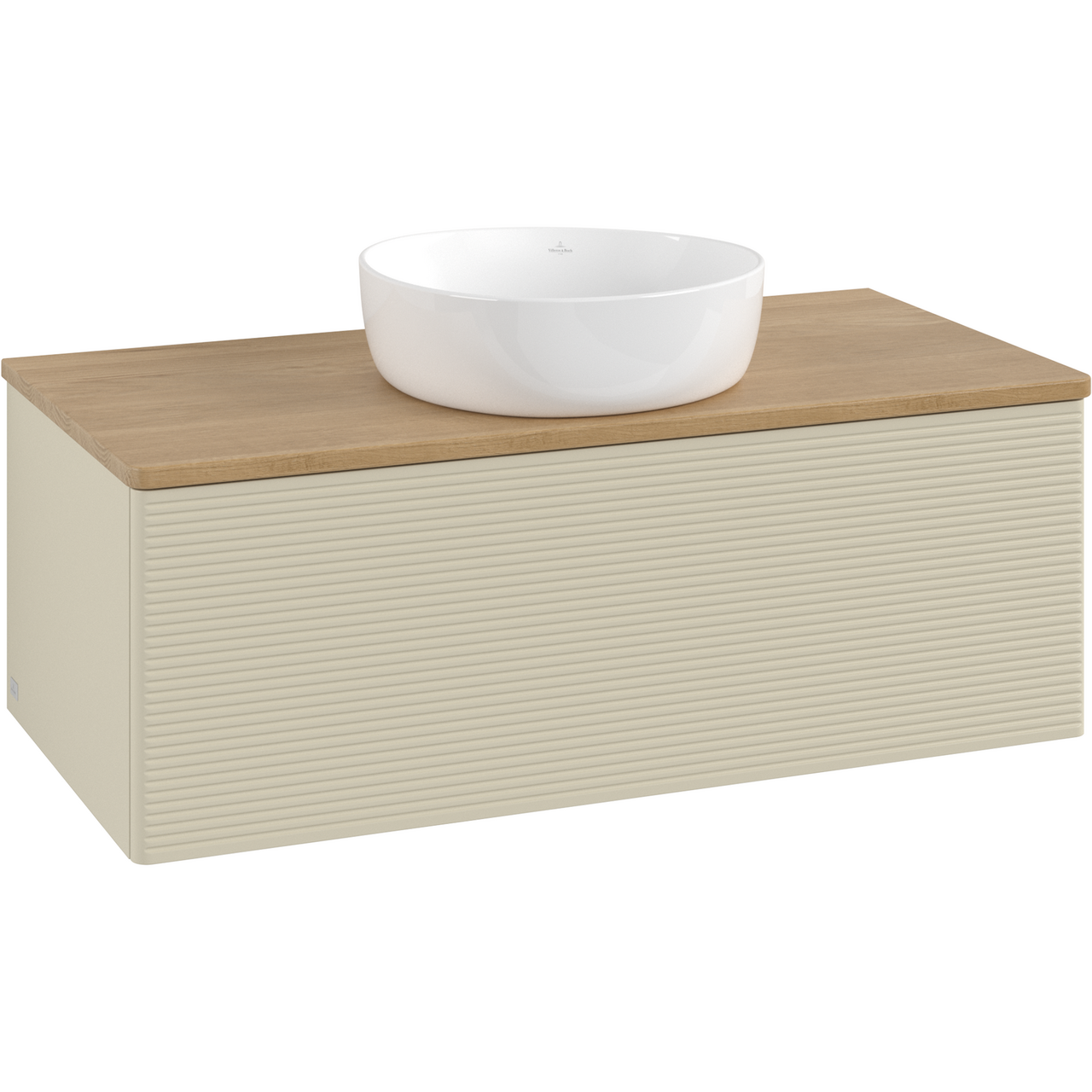 V&b antao servantskap 1 skuff rillet 1000x360x500 u/kranhull m/lys silkegrå/eik