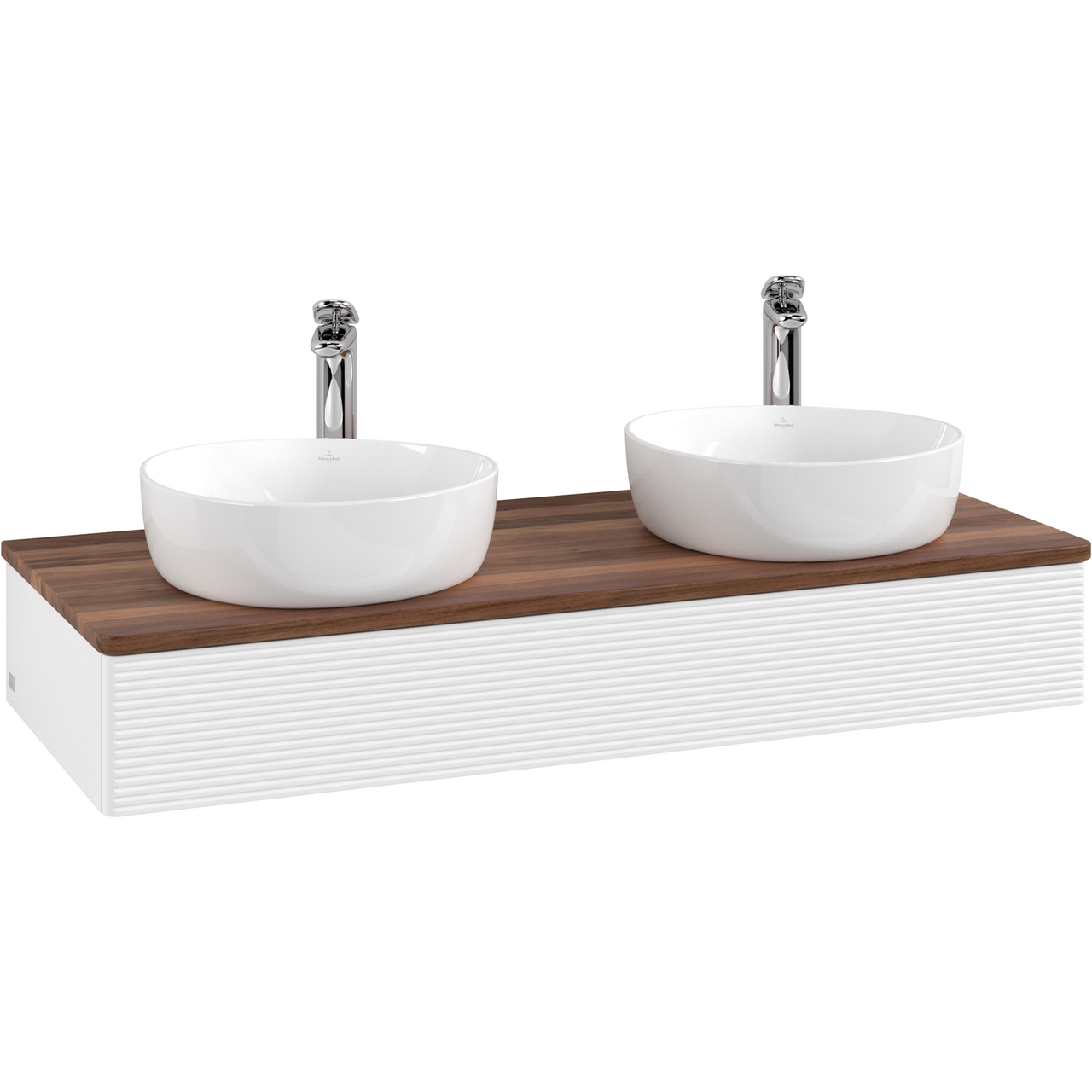 V&b antao servantskap 1 skuff rillet 1200x190x500 for 2 serv. m/kranhull m/lys matt hvit/valnøtt
