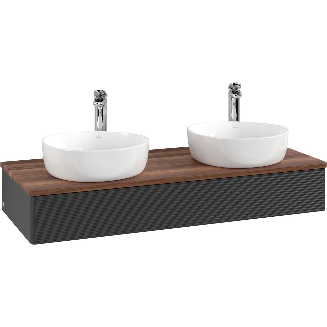 V&b antao servantskap 1 skuff rillet 1200x190x500 for 2 serv. m/kranhull m/lys matt sort/valnøtt