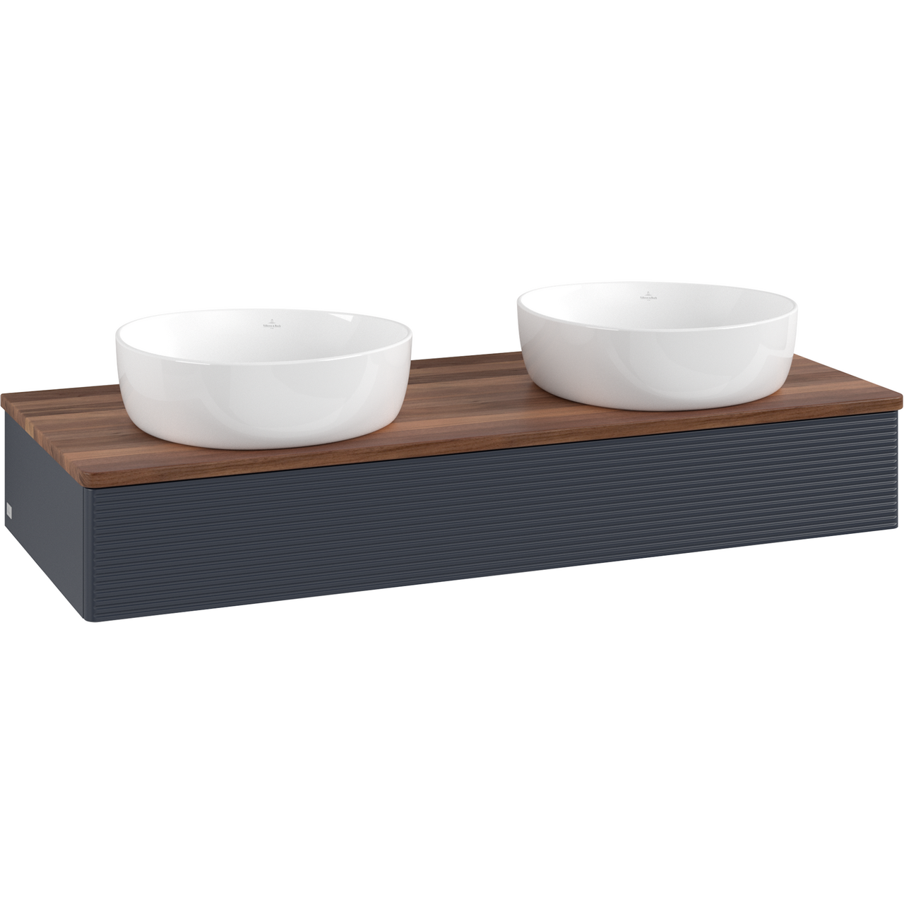 V&b antao servantskap 1 skuff rillet 1200x190x500 for 2 serv. u/kranhull m/lys blå/valnøtt