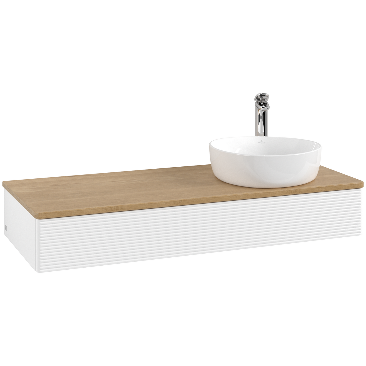 V&b antao servantskap 1 skuff rillet 1200x190x500 høyre m/kranhull matt hvit/eik