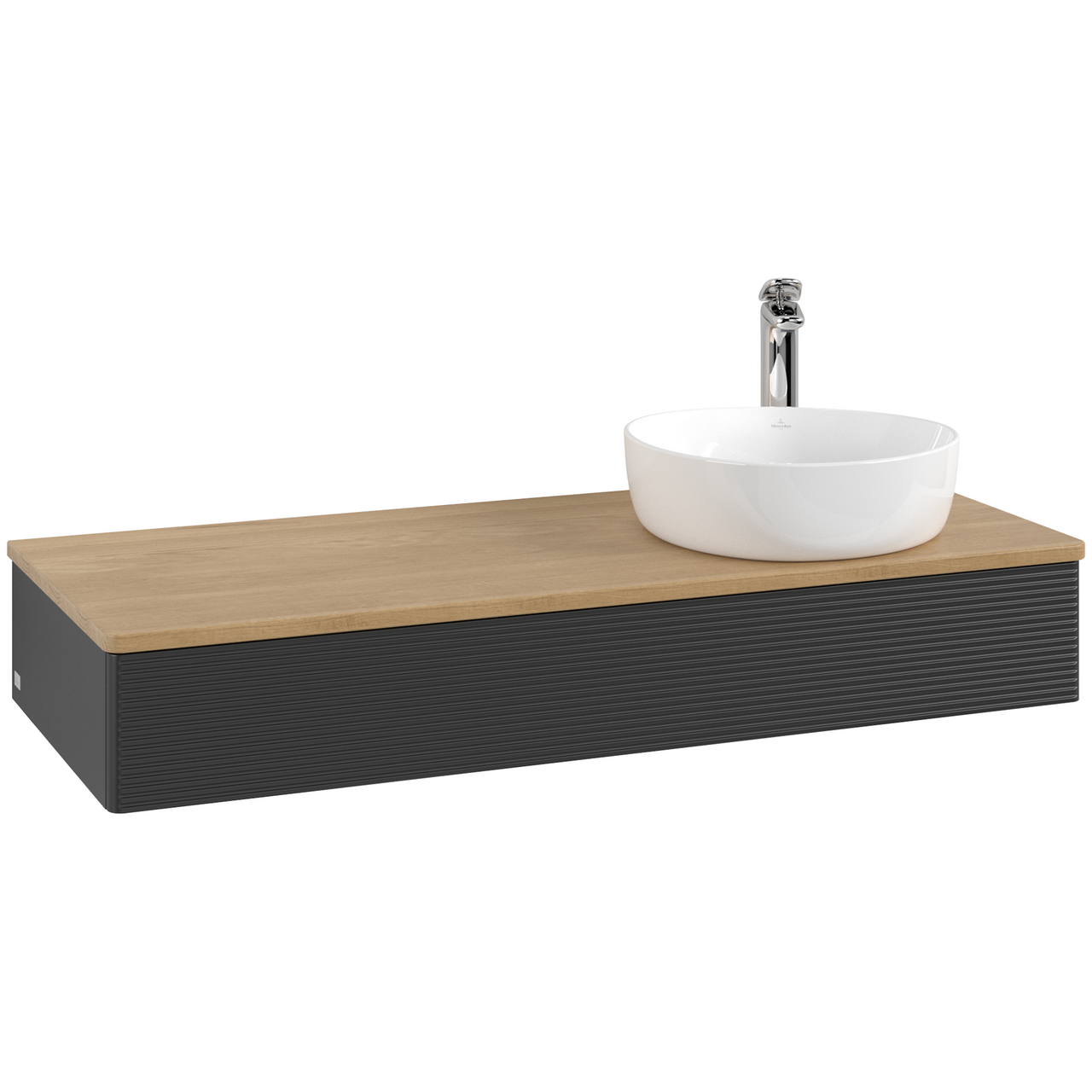 V&b antao servantskap 1 skuff rillet 1200x190x500 høyre m/kranhull matt sort/eik