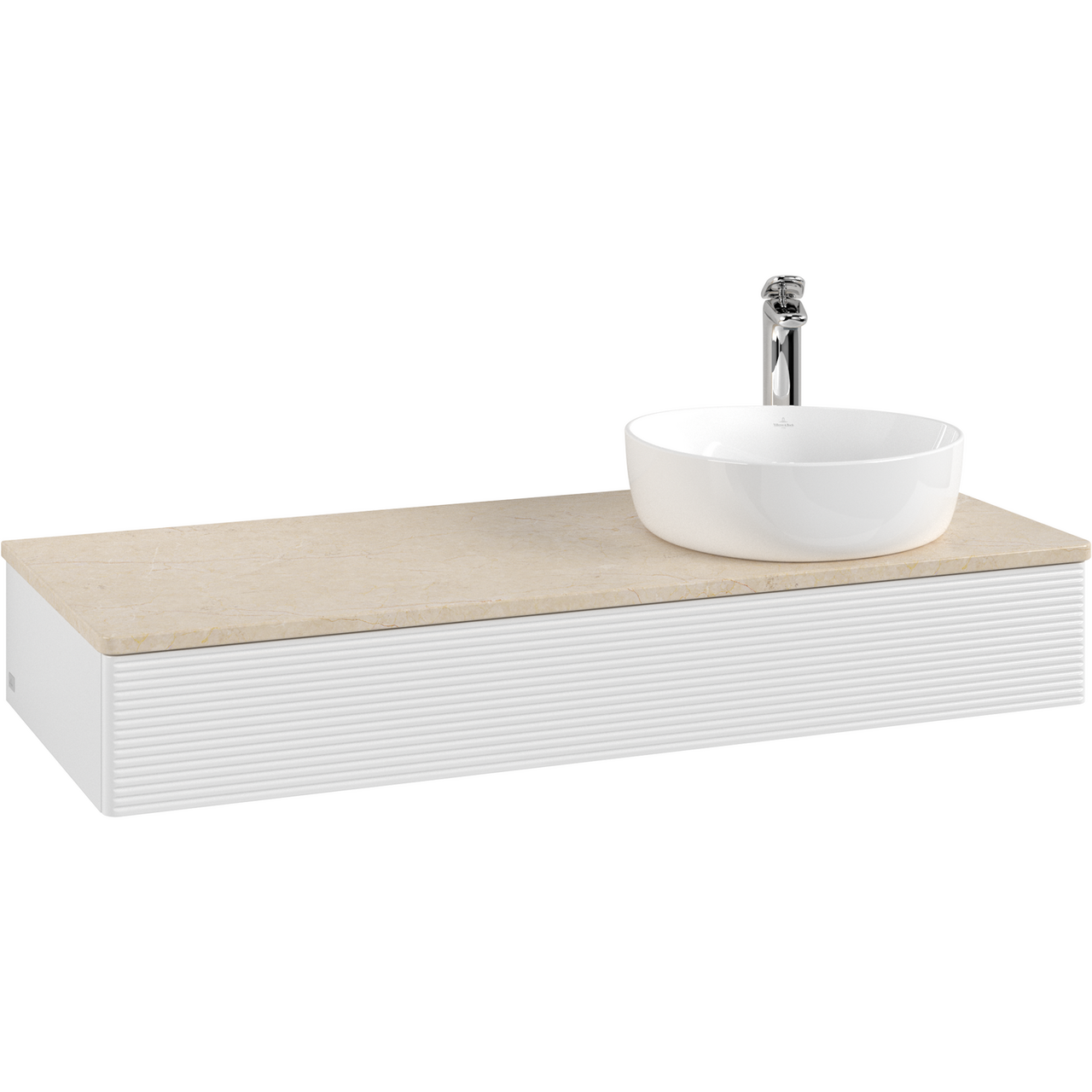 V&B ANTAO SERVANTSKAP 1 SKUFF RILLET 1200X190X500 HØYRE M/KRANHULL M/LYS HVIT/CRÉME