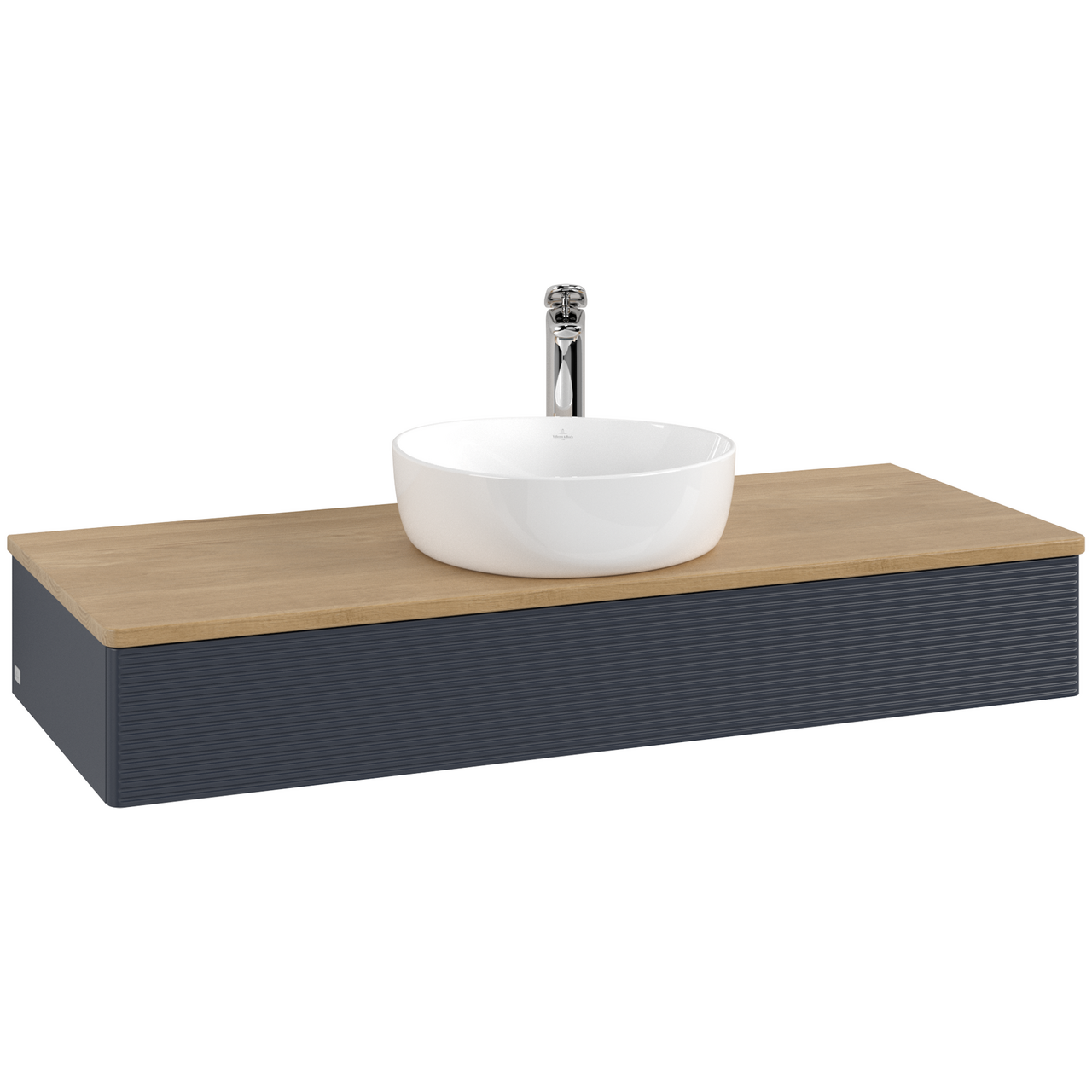 V&b antao servantskap 1 skuff rillet 1200x190x500 m/kranhull blå/eik