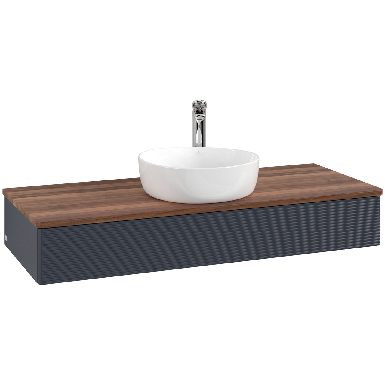 V&b antao servantskap 1 skuff rillet 1200x190x500 m/kranhull blå/valnøtt