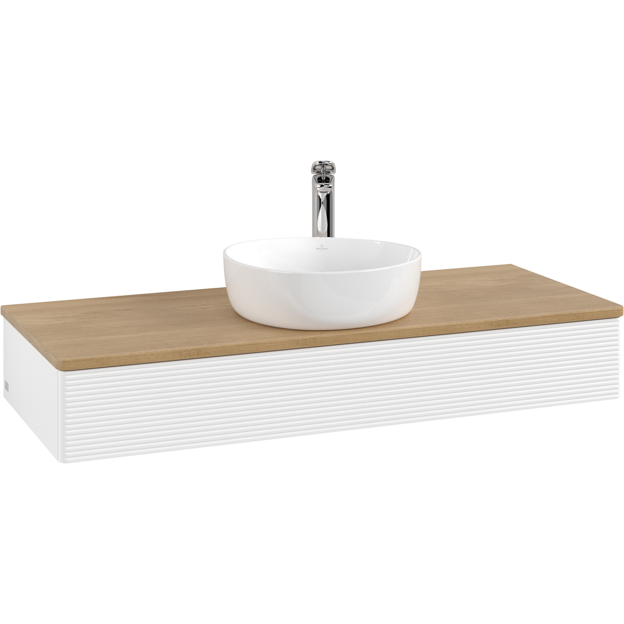 V&b antao servantskap 1 skuff rillet 1200x190x500 m/kranhull m/lys matt hvit/eik