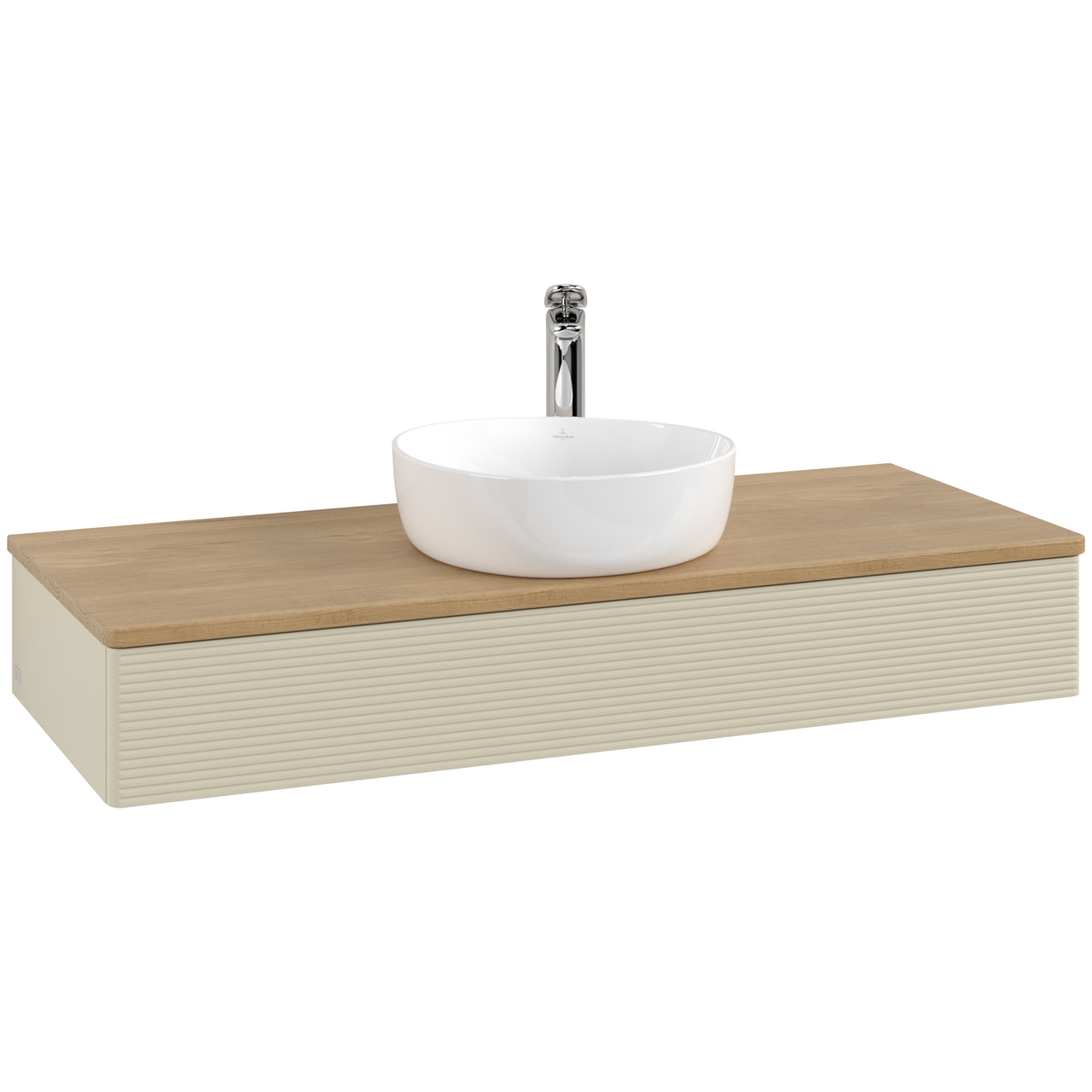 V&b antao servantskap 1 skuff rillet 1200x190x500 m/kranhull silkegrå/eik