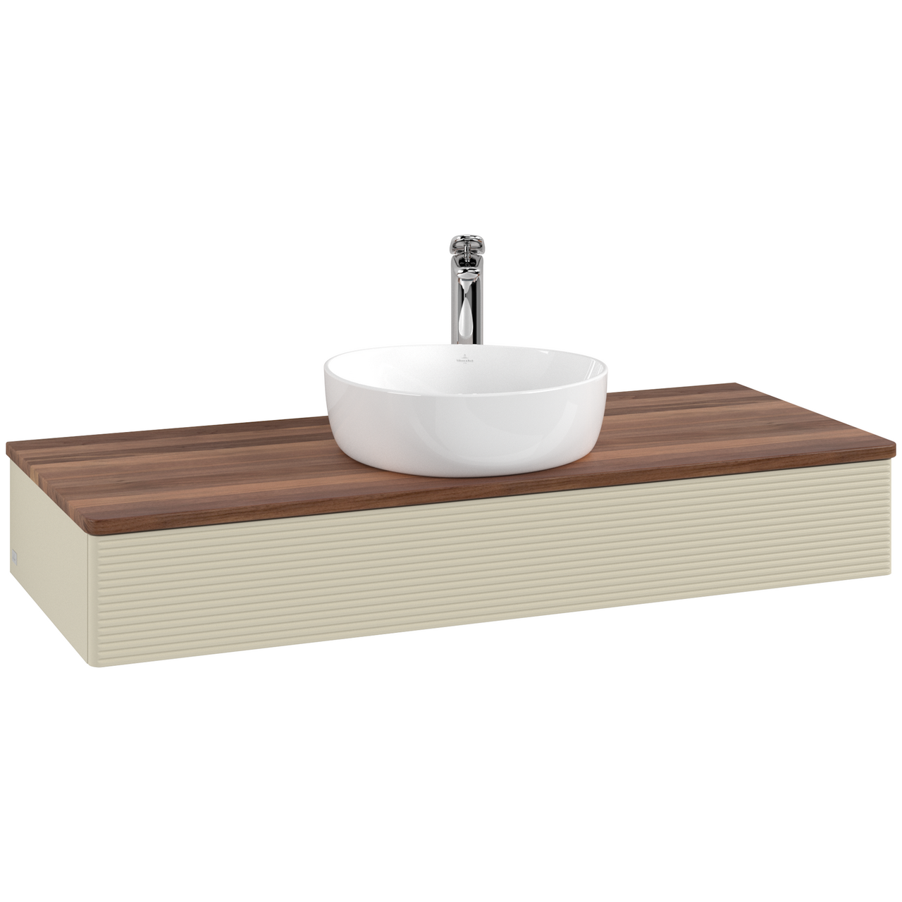 V&b antao servantskap 1 skuff rillet 1200x190x500 m/kranhull silkegrå/valnøtt