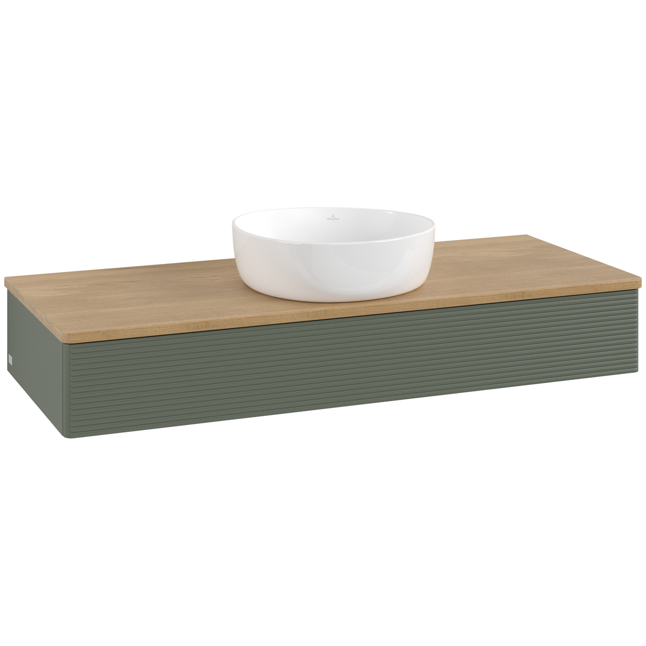 V&b antao servantskap 1 skuff rillet 1200x190x500 u/kranhull grønn/eik