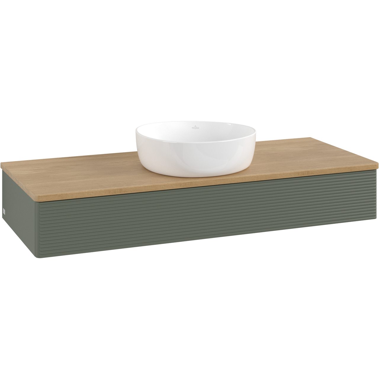V&b antao servantskap 1 skuff rillet 1200x190x500 u/kranhull m/lys grønn/eik